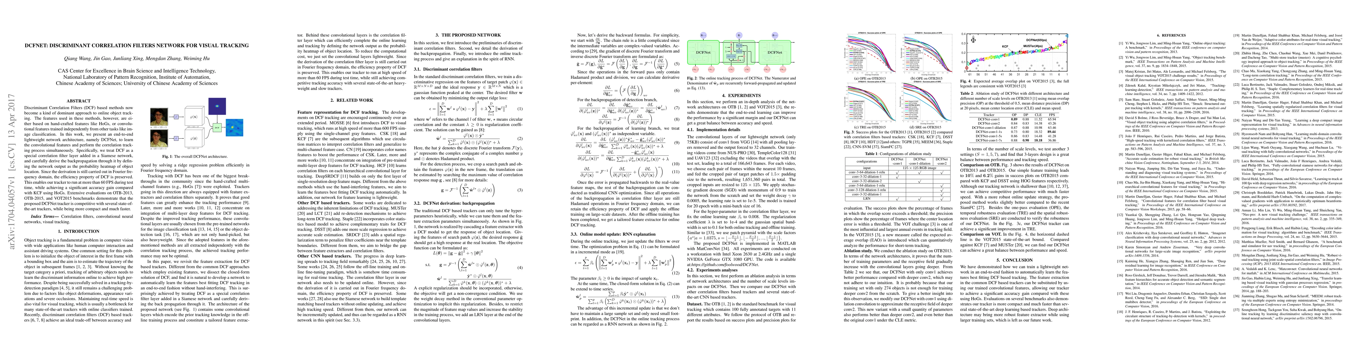 DCFNet integrates Discriminant Correlation Filters into a Siamese network to simultaneously learn convolutional features and perform tracking, achieving high efficiency and accuracy. The method outperforms traditional KCF and competes with state-of-the-art trackers while maintaining a lightweight design.