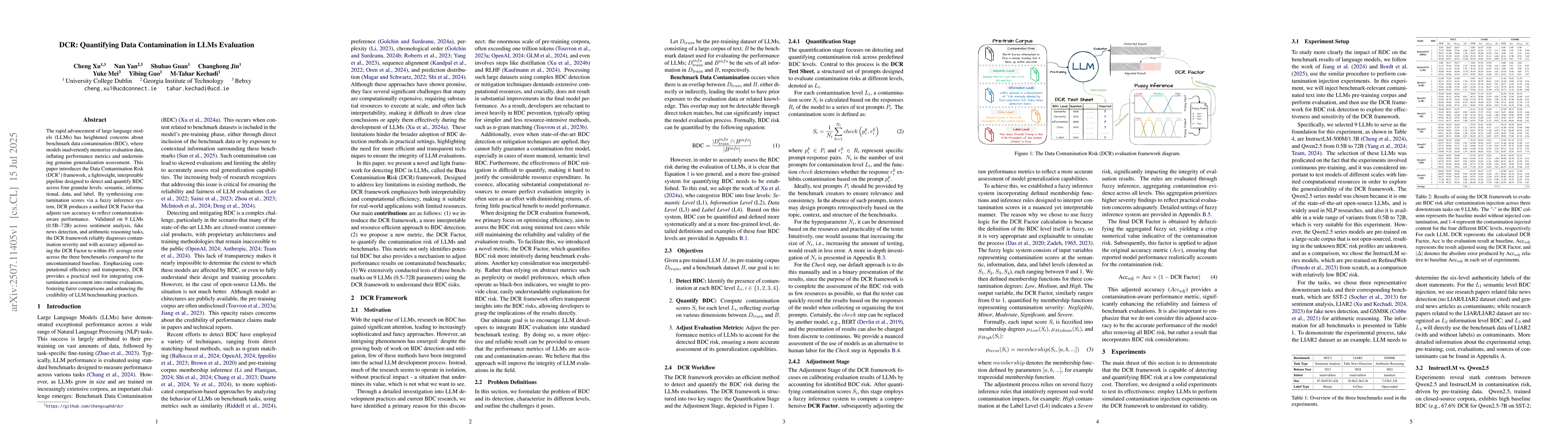 The rapid advancement of large language models (LLMs) has heightened concerns about benchmark data contamination (BDC), where models inadvertently memorize evaluation data, inflating performance metrics and undermining genuine generalization assessment. This paper introduces the Data Contamination Risk (DCR) framework, a lightweight, interpretable pipeline designed to detect and quantify BDC across four granular levels: semantic, informational, data, and label. By synthesizing contamination scores via a fuzzy inference system, DCR produces a unified DCR Factor that adjusts raw accuracy to reflect contamination-aware performance. Validated on 9 LLMs (0.5B-72B) across sentiment analysis, fake news detection, and arithmetic reasoning tasks, the DCR framework reliably diagnoses contamination severity and with accuracy adjusted using the DCR Factor to within 4% average error across the three benchmarks compared to the uncontaminated baseline. Emphasizing computational efficiency and transparency, DCR provides a practical tool for integrating contamination assessment into routine evaluations, fostering fairer comparisons and enhancing the credibility of LLM benchmarking practices.