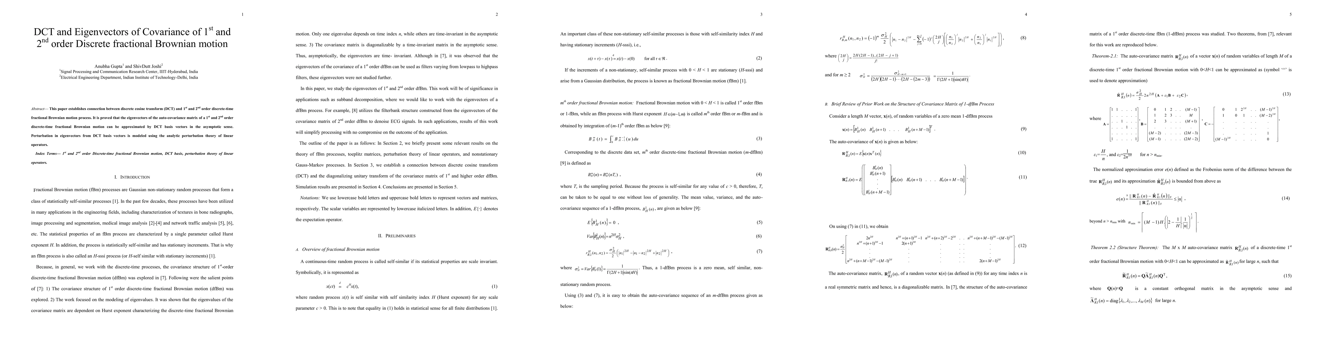 This paper establishes connection between discrete cosine transform (DCT) and 1st and 2nd order discrete-time fractional Brownian motion process. It is proved that the eigenvectors of the auto-covariance matrix of a 1st and 2nd order discrete-time fractional Brownian motion can be approximated by DCT basis vectors in the asymptotic sense. Perturbation in eigenvectors from DCT basis vectors is modeled using the analytic perturbation theory of linear operators.