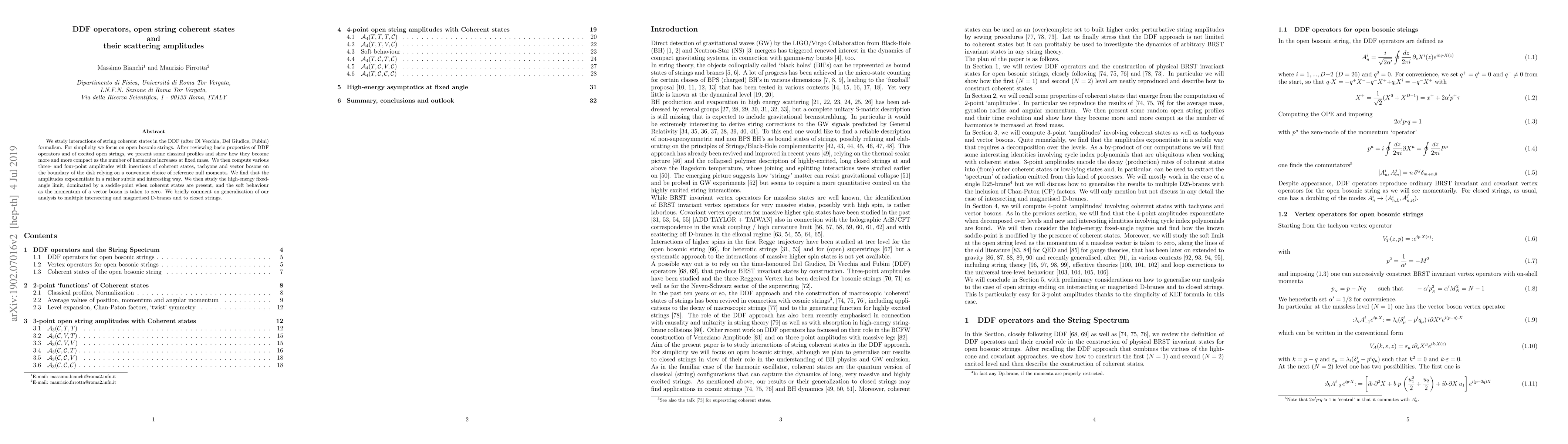 We study interactions of string coherent states in the DDF (after Di Vecchia, Del Giudice, Fubini) formalism. For simplicity we focus on open bosonic strings. After reviewing basic properties of DDF operators and of excited open strings, we present some classical profiles and show how they become more and more compact as the number of harmonics increases at fixed mass. We then compute various three- and four-point amplitudes with insertions of coherent states, tachyons and vector bosons on the boundary of the disk relying on a convenient choice of reference null momenta. We find that the amplitudes exponentiate in a rather subtle and interesting way. We then study the high-energy fixed-angle limit, dominated by a saddle-point when coherent states are present, and the soft behaviour as the momentum of a vector boson is taken to zero. We briefly comment on generalisation of our analysis to multiple intersecting and magnetised D-branes and to closed strings.