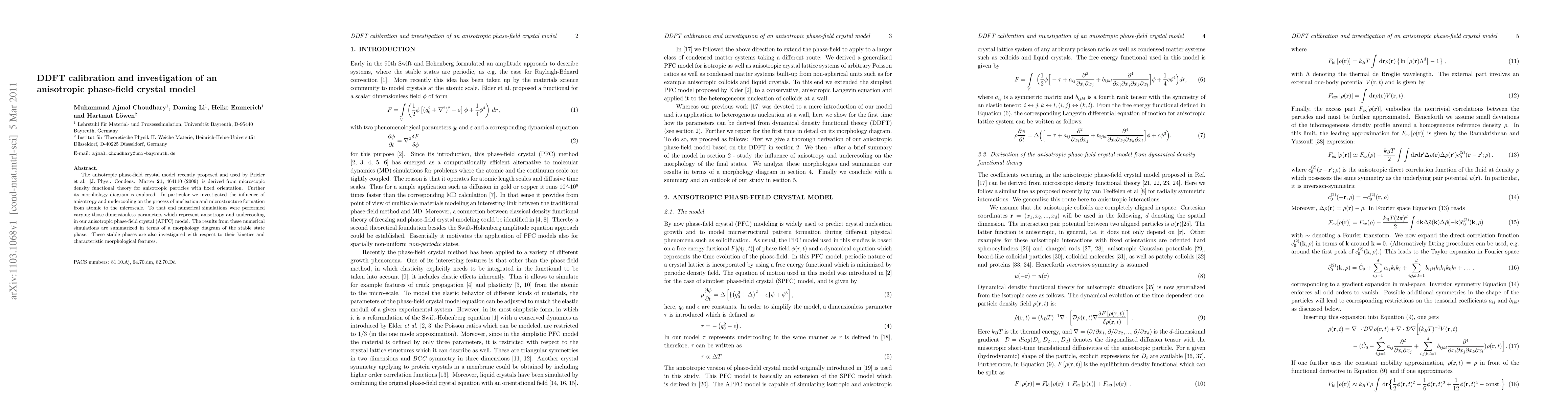 The anisotropic phase-field crystal model recently proposed and used by Prieler et al. [J. Phys.: Condens. Matter 21, 464110 (2009)] is derived from microscopic density functional theory for anisotropic particles with fixed orientation. Further its morphology diagram is explored. In particular we investigated the influence of anisotropy and undercooling on the process of nucleation and microstructure formation from atomic to the microscale. To that end numerical simulations were performed varying those dimensionless parameters which represent anisotropy and undercooling in our anisotropic phase-field crystal (APFC) model. The results from these numerical simulations are summarized in terms of a morphology diagram of the stable state phase. These stable phases are also investigated with respect to their kinetics and characteristic morphological features.