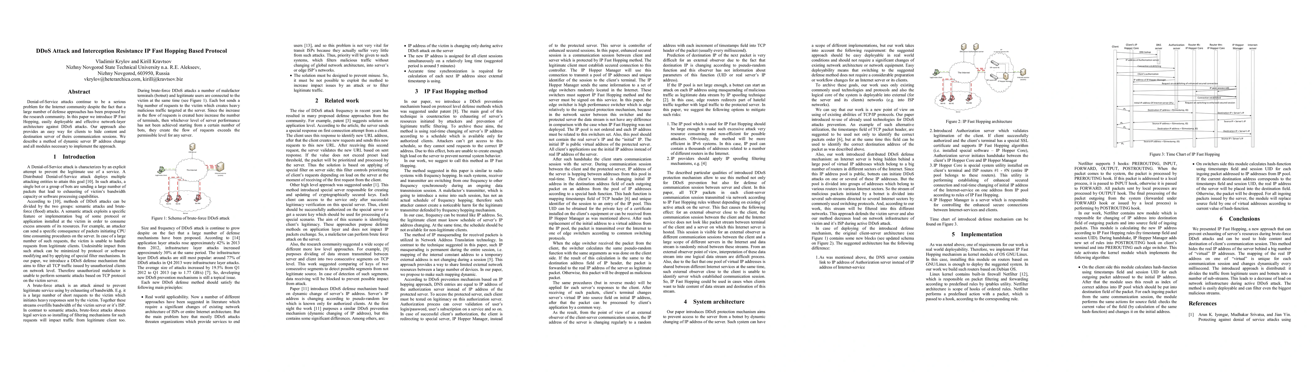 Denial-of-Service attacks continue to be a serious problem for the Internet community despite the fact that a large number of defense approaches has been proposed by the research community. In this paper we introduce IP Fast Hopping, easily deployable and effective network-layer architecture against DDoS attacks. Our approach also provides an easy way for clients to hide content and destination server of theirs communication sessions. We describe a method of dynamic server IP address change and all modules necessary to implement the approach.