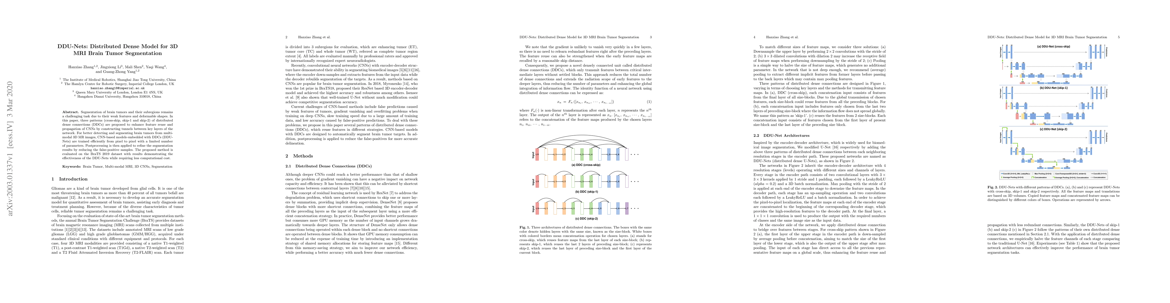 This research paper proposes a new deep learning model called DDU-Nets for 3D MRI brain tumor segmentation, achieving better results with fewer parameters and computational cost.