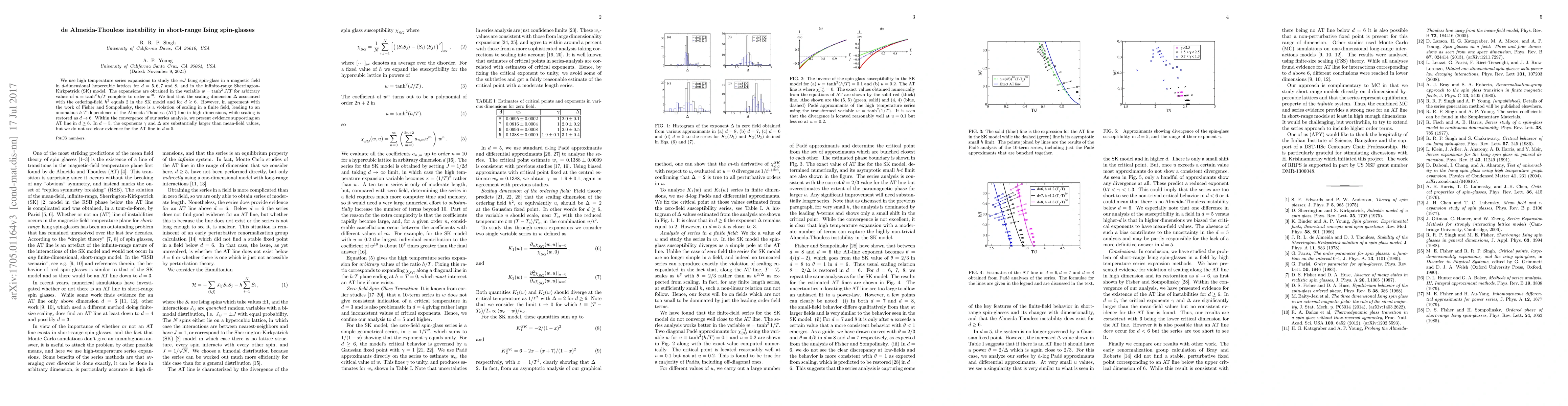 We use high temperature series expansions to study the $\pm J$ Ising spin-glass in a magnetic field in $d$-dimensional hypercubic lattices for $d=5, 6, 7$ and $8$, and in the infinite-range Sherrington-Kirkpatrick (SK) model. The expansions are obtained in the variable $w=\tanh^2{J/T}$ for arbitrary values of $u=\tanh^2{h/T}$ complete to order $w^{10}$. We find that the scaling dimension $\Delta$ associated with the ordering-field $h^2$ equals $2$ in the SK model and for $d\ge 6$. However, in agreement with the work of Fisher and Sompolinsky, there is a violation of scaling in a finite field, leading to an anomalous $h$-$T$ dependence of the Almeida-Thouless (AT) line in high dimensions, while scaling is restored as $d \to 6$. Within the convergence of our series analysis, we present evidence supporting an AT line in $d\ge 6$. In $d=5$, the exponents $\gamma$ and $\Delta$ are substantially larger than mean-field values, but we do not see clear evidence for the AT line in $d=5$.