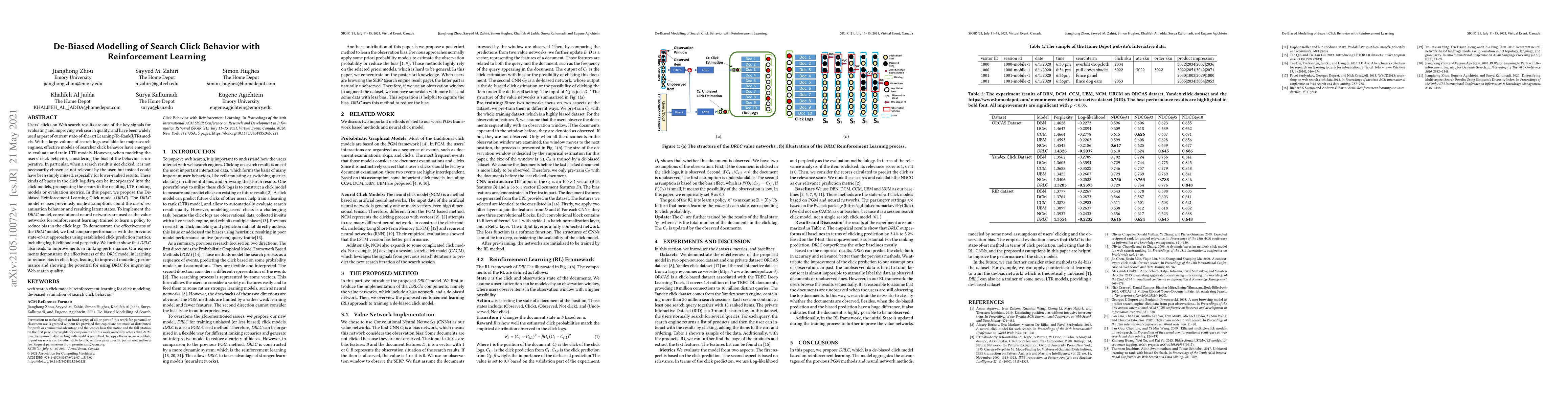 Researchers propose De-biased Reinforcement Learning Click model to address biases in search click behavior data, leading to improved modeling performance and web search quality.