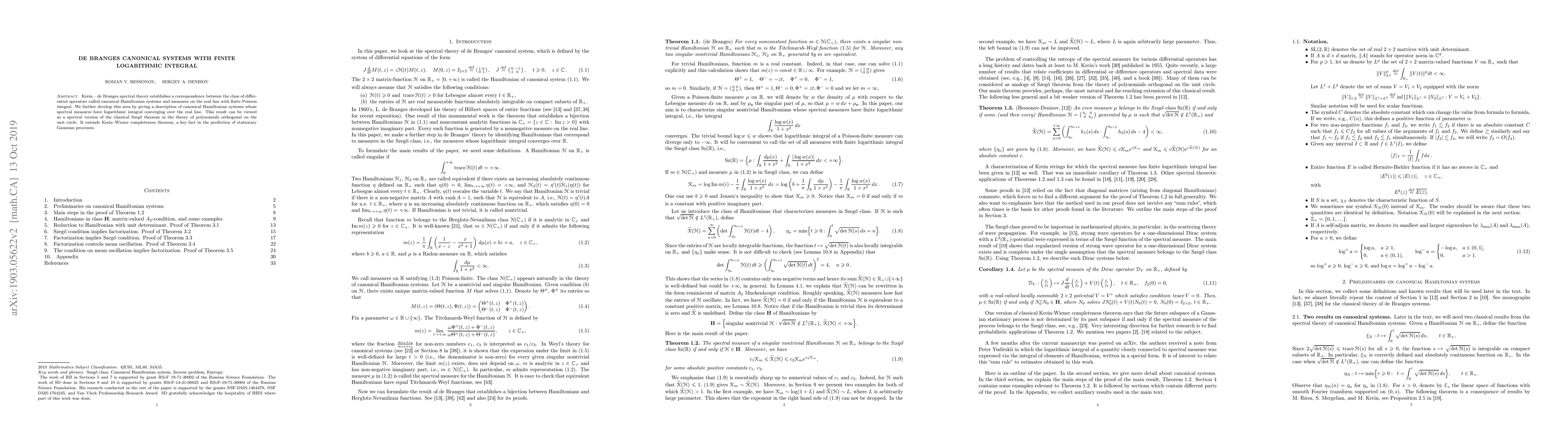 This paper develops Krein-de Branges spectral theory by describing canonical Hamiltonian systems with spectral measures whose logarithmic integrals converge. It extends the classical Szego theorem and Krein-Wiener completeness theorem, enhancing the prediction of stationary Gaussian processes.
