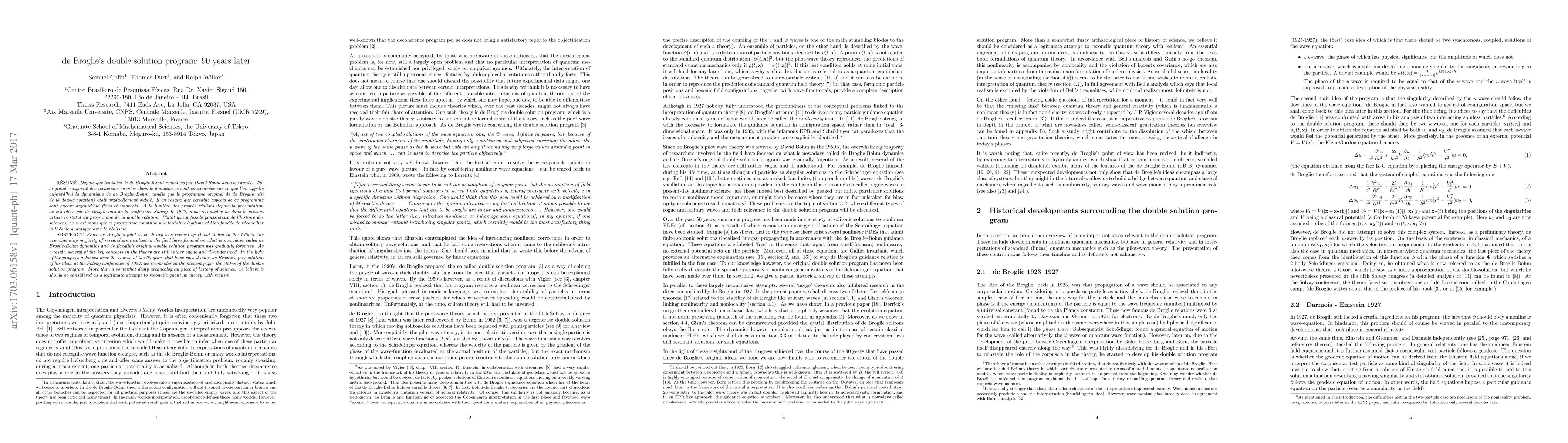 Since de Broglie's pilot wave theory was revived by David Bohm in the 1950's, the overwhelming majority of researchers involved in the field have focused on what is nowadays called de Broglie-Bohm dynamics and de Broglie's original double solution program was gradually forgotten. As a result, several of the key concepts in the theory are still rather vague and ill-understood. In the light of the progress achieved over the course of the 90 years that have passed since de Broglie's presentation of his ideas at the Solvay conference of 1927, we reconsider in the present paper the status of the double solution program. More than a somewhat dusty archaeological piece of history of science, we believe it should be considered as a legitimate attempt to reconcile quantum theory with realism.