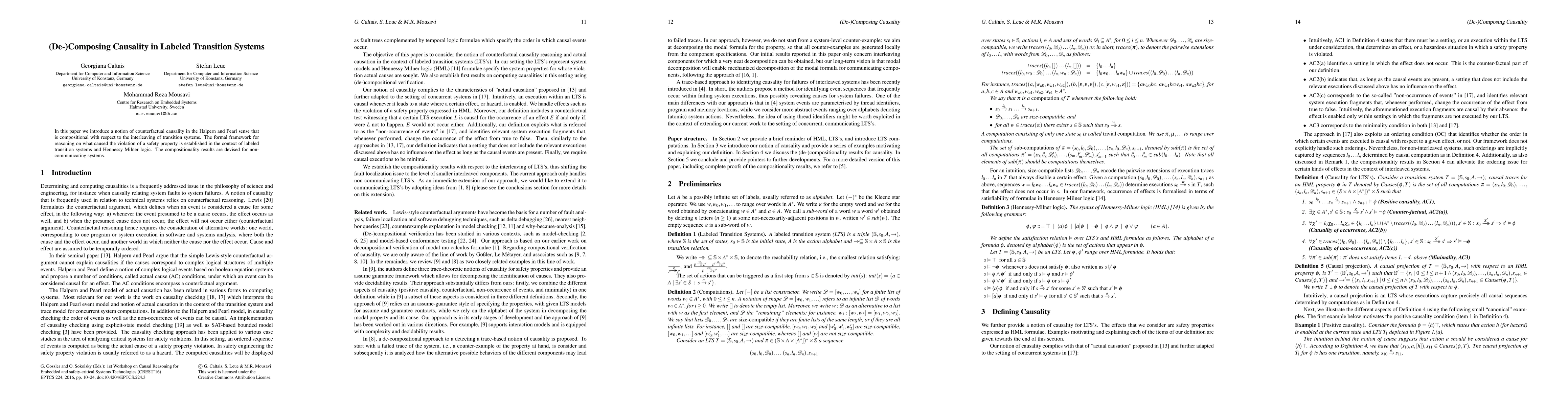 Researchers introduced a framework to analyze counterfactual causality in labeled transition systems, enabling compositional reasoning about safety property violations. Their results establish a formal approach for non-communicating systems.