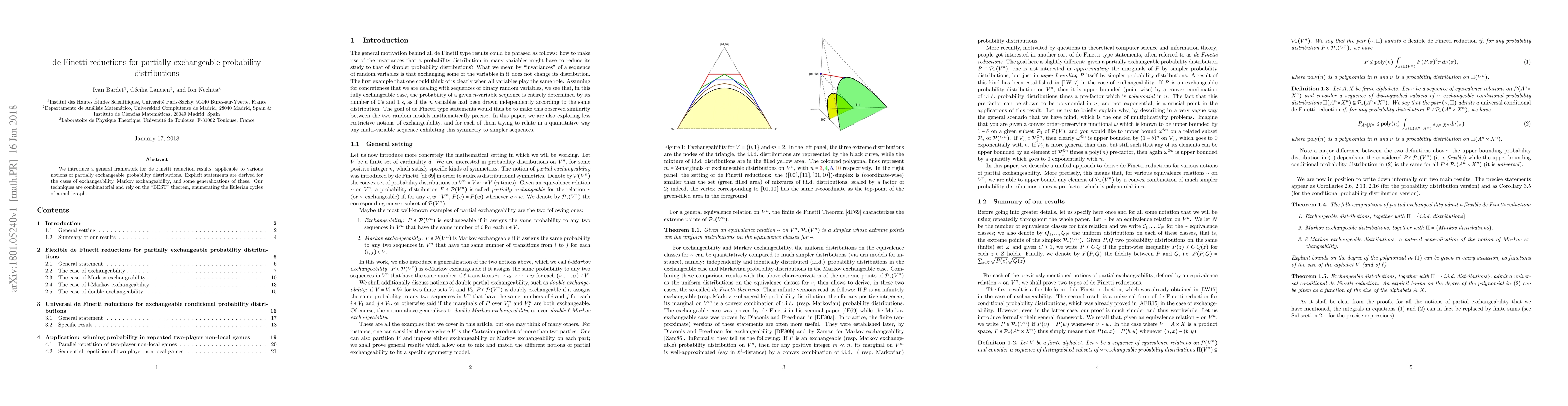 This paper presents a framework for de Finetti reduction applicable to partially exchangeable distributions, deriving explicit results for exchangeability, Markov exchangeability, and their generalizations, using combinatorial techniques based on the BEST theorem for Eulerian cycles.