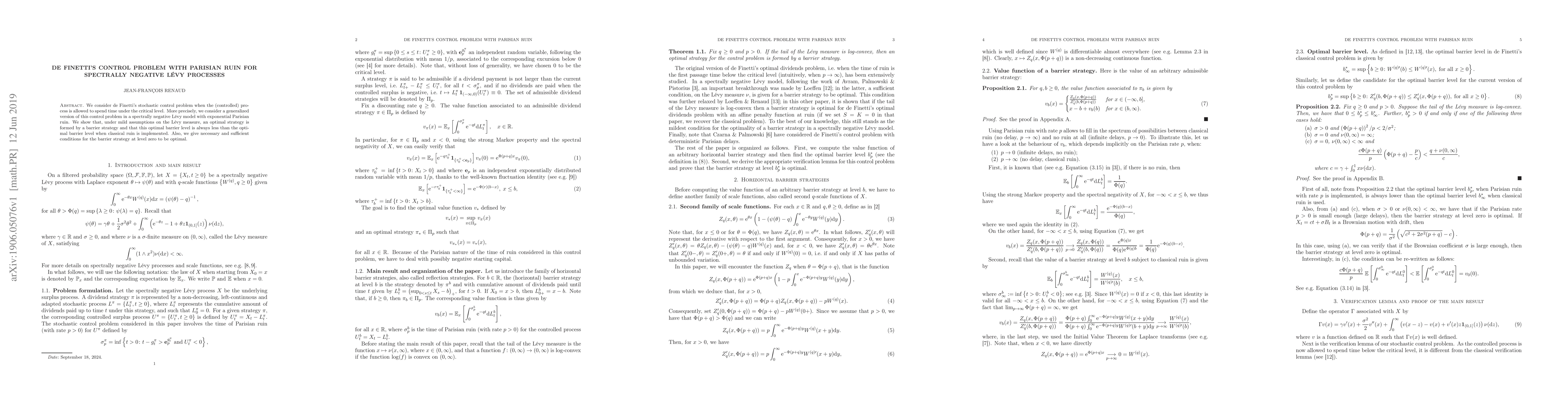 We consider de Finetti's stochastic control problem when the (controlled) process is allowed to spend time under the critical level. More precisely, we consider a generalized version of this control problem in a spectrally negative L\'evy model with exponential Parisian ruin. We show that, under mild assumptions on the L\'evy measure, an optimal strategy is formed by a barrier strategy and that this optimal barrier level is always less than the optimal barrier level when classical ruin is implemented. Also, we give necessary and sufficient conditions for the barrier strategy at level zero to be optimal.