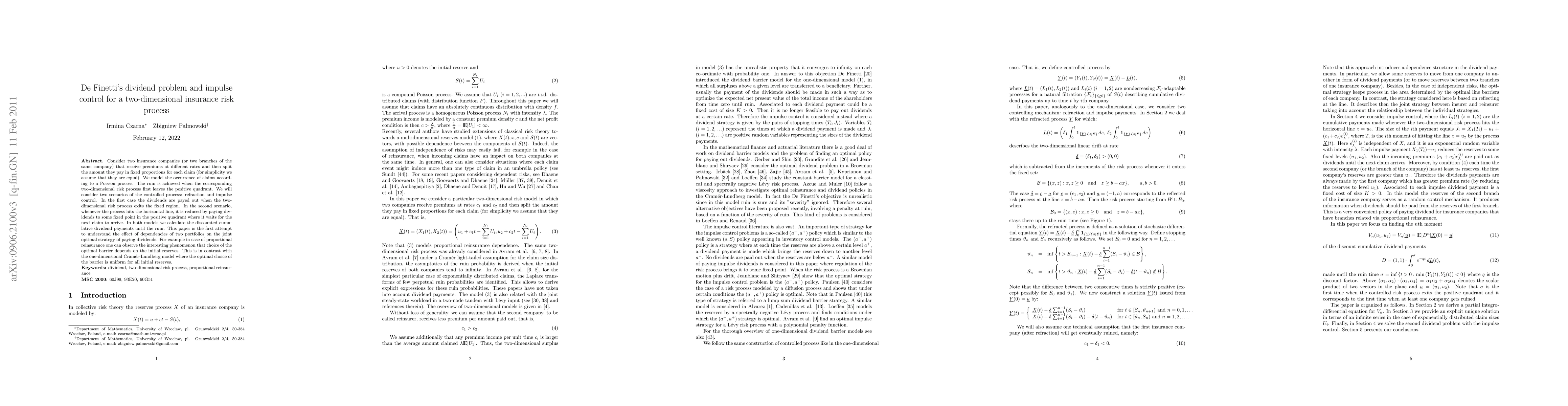 This paper explores optimal dividend strategies for two-dimensional insurance risk processes, considering refraction and impulse control scenarios. It finds that the choice of optimal barrier for proportional reinsurance depends on initial reserves, contrasting with the uniform barrier in the one-dimensional Cramér-Lundberg model.