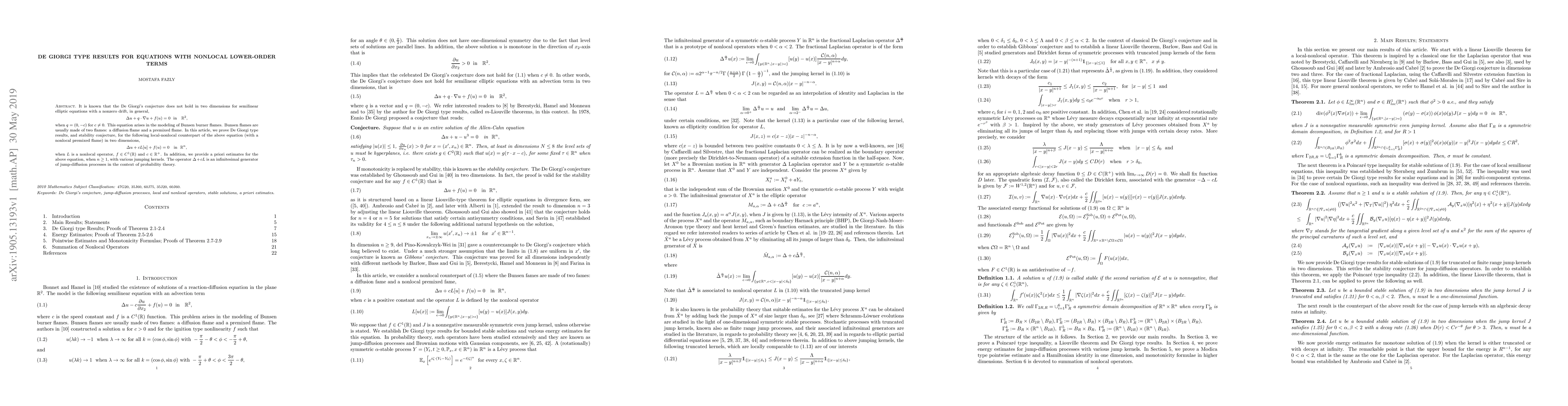 This paper proves De Giorgi type results for equations with nonlocal lower-order terms in two dimensions, extending previous findings to models of Bunsen burner flames.