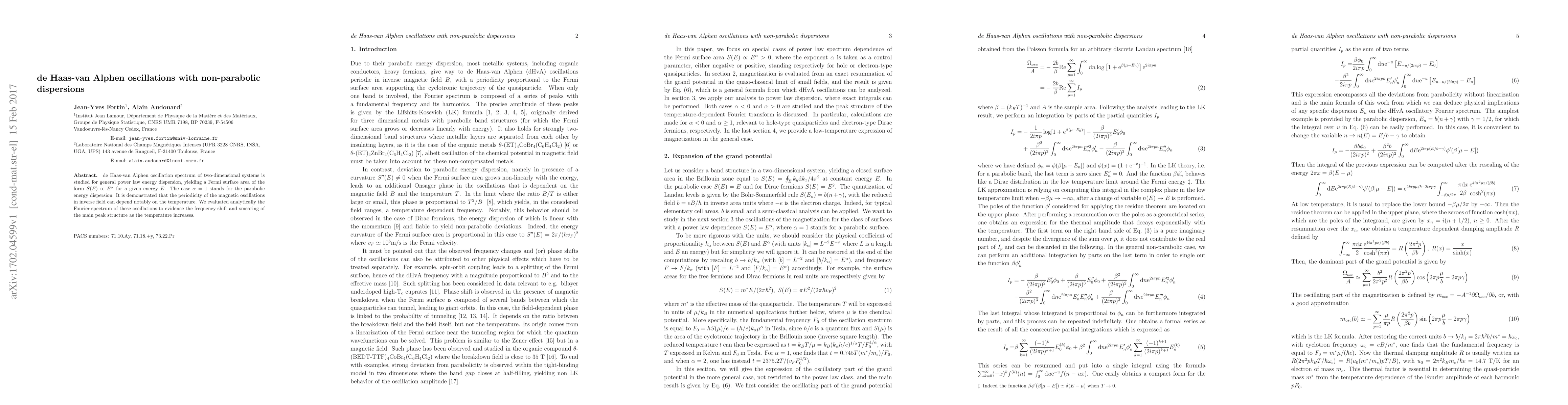 This paper studies de Haas-van Alphen oscillations in two-dimensional systems with non-parabolic energy dispersions, showing that the Fermi surface area varies as $S(E)\propto E^\alpha$. It highlights that the periodicity of the magnetic oscillations depends on temperature, and analytically evaluates the Fourier spectrum to reveal frequency shifts and peak smearing with rising temperature.