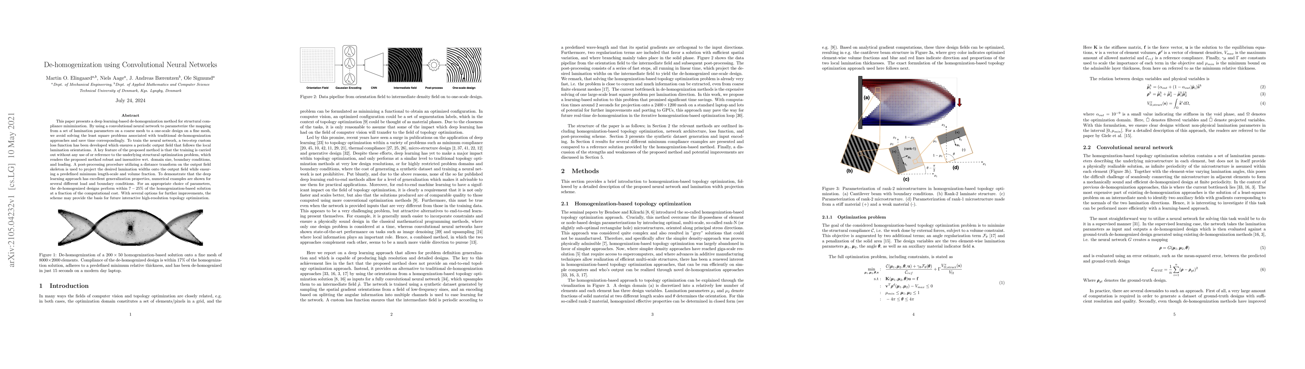 This paper introduces a convolutional neural network-based method for de-homogenization that minimizes structural compliance, avoiding traditional least square problems and saving time. The method is robust and generalizes well across different load and boundary conditions.