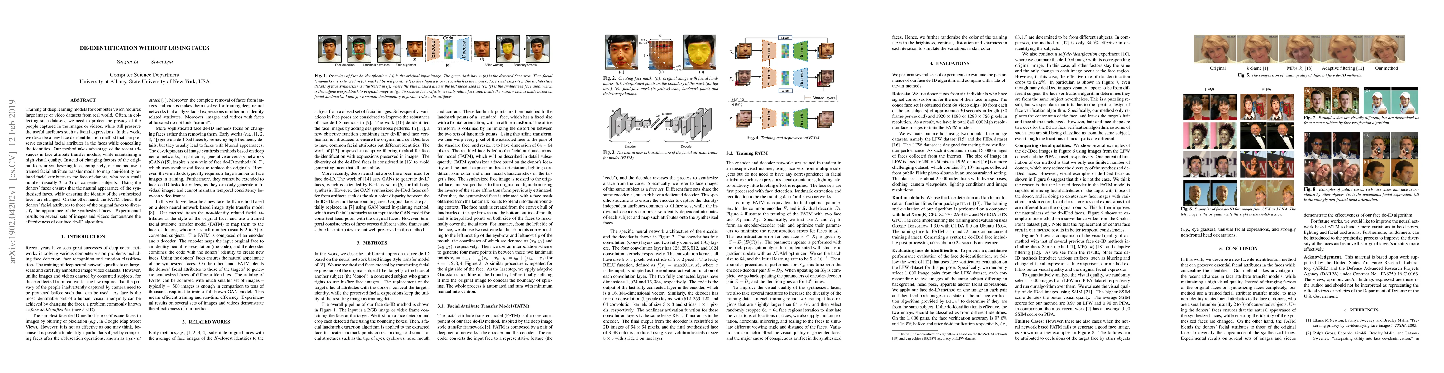 This paper proposes a new face de-identification method that uses facial attribute transfer models to preserve essential facial attributes while concealing identities, employing a small number of consented donors to maintain visual quality and natural appearance. Experimental results show the effectiveness of the method.