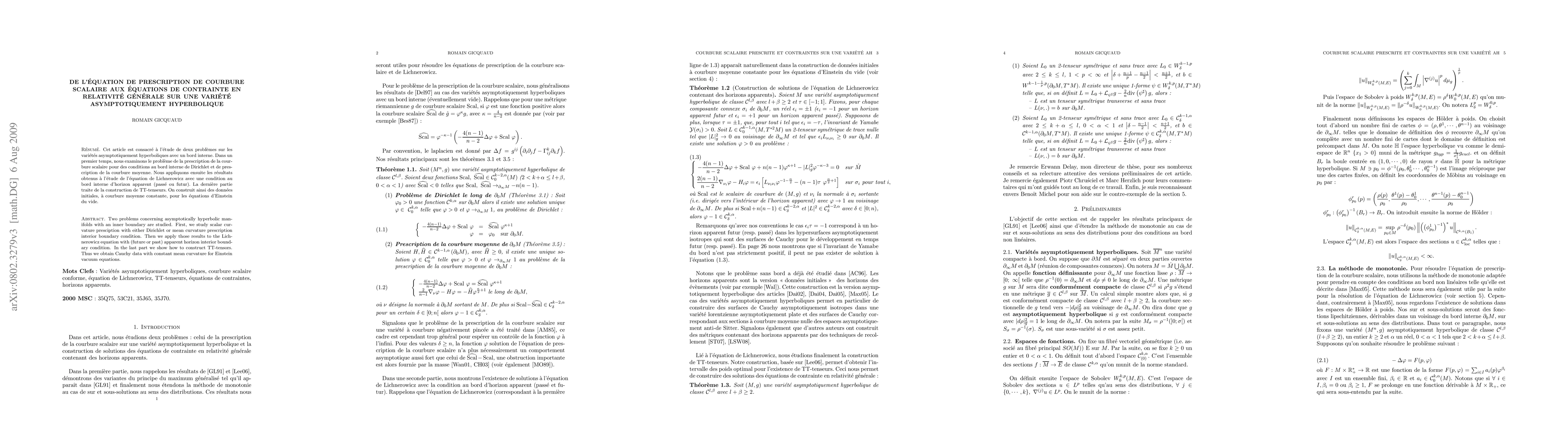 Two problems concerning asymptotically hyperbolic manifolds with an inner boundary are studied. First, we study scalar curvature presciption with either Dirichlet or mean curvature prescription interior boundary condition. Then we apply those results to the Lichnerowicz equation with (future or past) apparent horizon interior boundary condition. In the last part we show how to construct TT-tensors. Thus we obtain Cauchy data with constant mean curvature for Einstein vacuum equations.