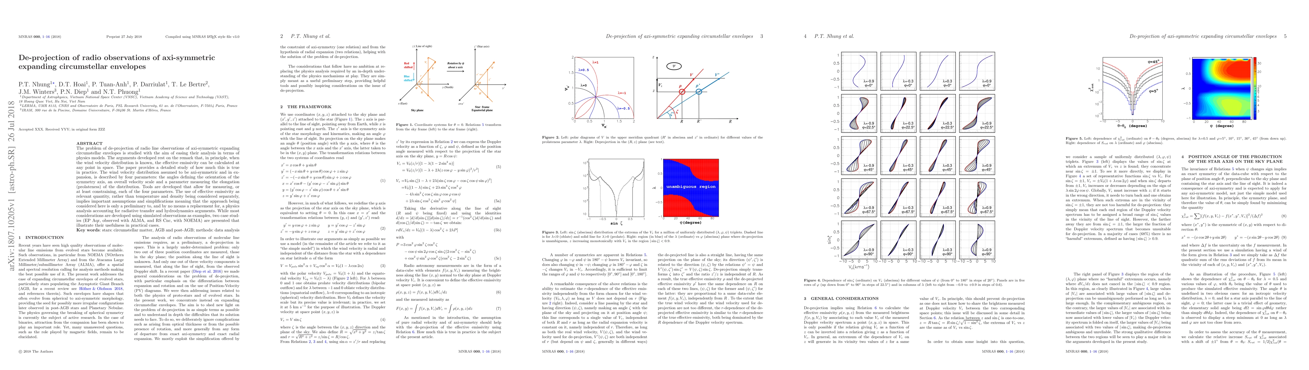 This paper develops methods to de-project radio line observations of axi-symmetric expanding circumstellar envelopes, aiming to simplify their analysis. It introduces tools to measure four key parameters describing the wind velocity distribution and discusses the limitations of using effective emissivity instead of detailed physics models.