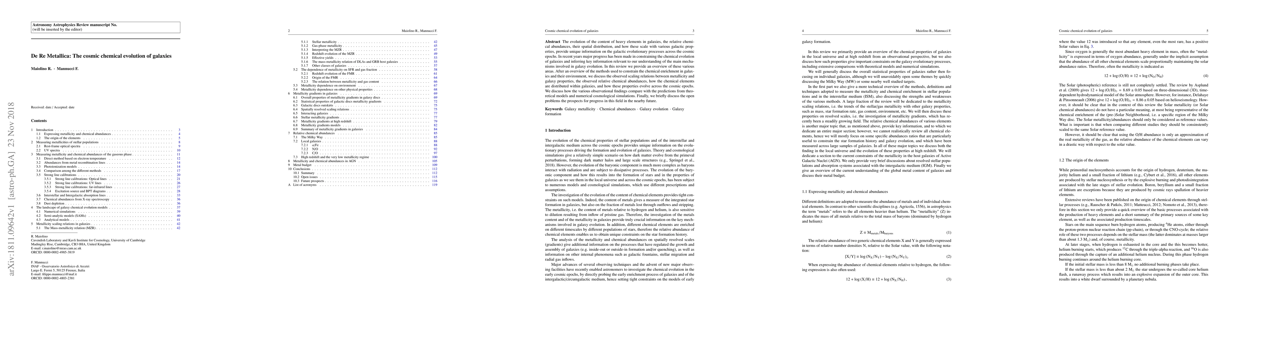 This paper reviews the cosmic chemical evolution of galaxies, focusing on the distribution and scaling of heavy elements and their relation to galactic properties. It compares observational findings with theoretical models and simulations to understand galaxy evolution mechanisms, and highlights open problems and future research prospects.