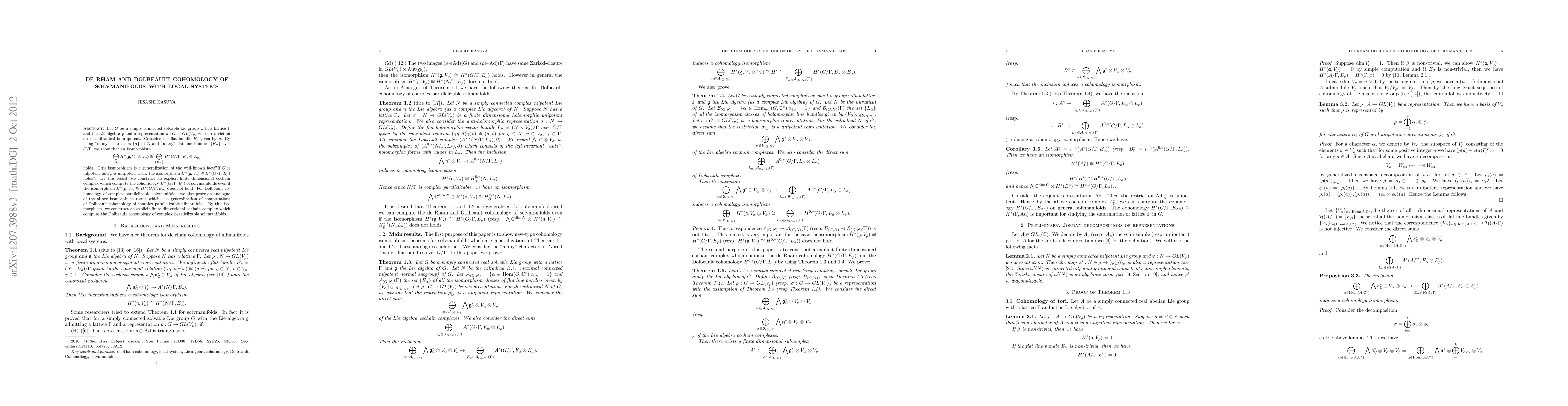 This paper establishes an isomorphism between de Rham and Dolbeault cohomology of solvmanifolds with local systems, generalizing known results for nilmanifolds. It constructs explicit finite-dimensional cochain complexes to compute these cohomologies.