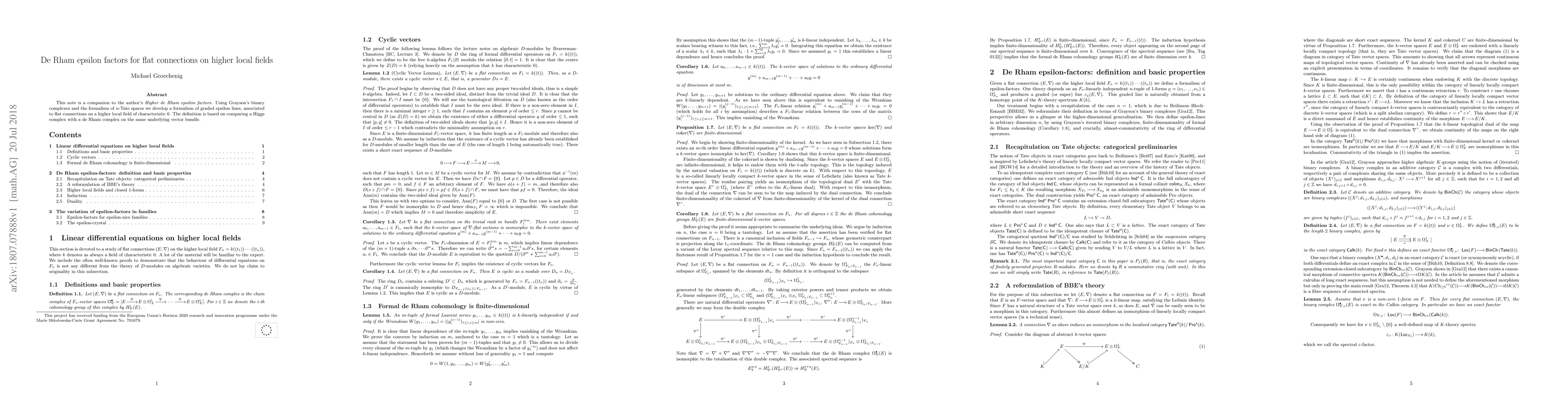 This paper develops a formalism of graded epsilon lines for flat connections on higher local fields, utilizing Grayson's binary complexes and $n$-Tate spaces to compare Higgs and de Rham complexes on vector bundles. It complements the author's prior work on higher de Rham epsilon factors.