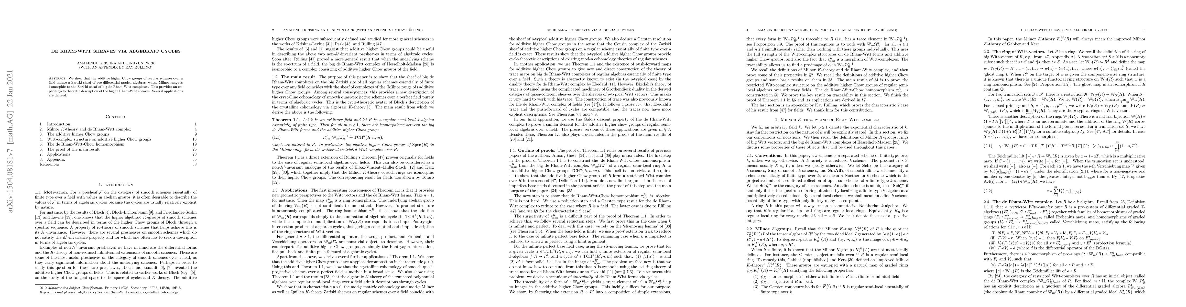 This paper constructs a Zariski sheaf of pro-differential graded algebras using additive higher Chow groups, showing it is isomorphic to the Zariski sheaf of big de Rham-Witt complexes, providing a cycle-theoretic description of the latter. Applications of this construction are also discussed.