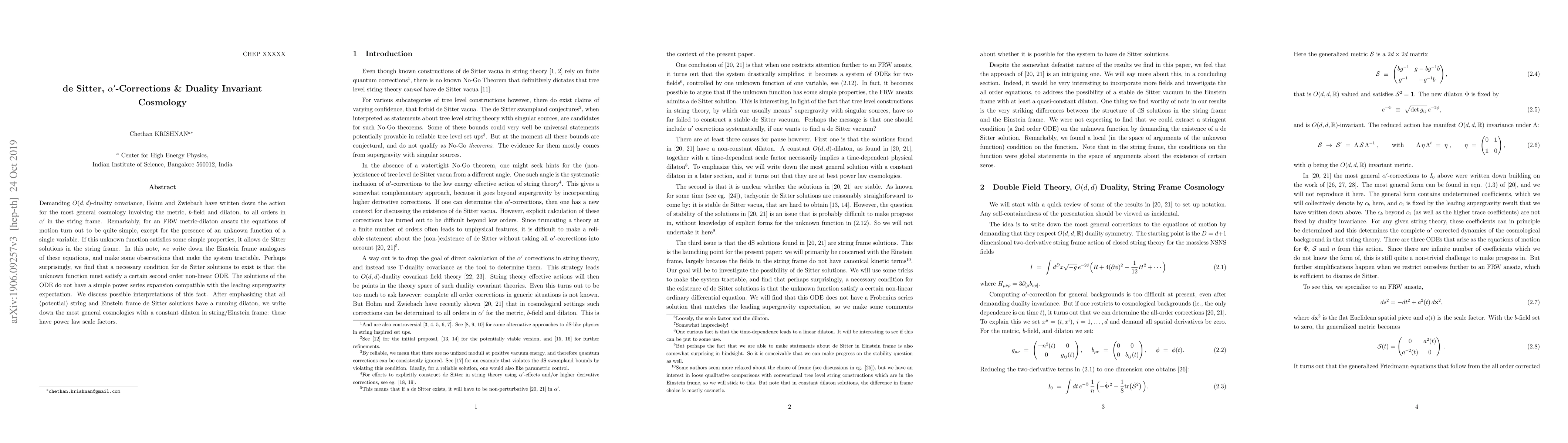 This research extends previous work by Hohm and Zwiebach by deriving Einstein frame equations and imposing conditions for de Sitter solutions, highlighting the challenges posed by non-perturbative α'-corrections.