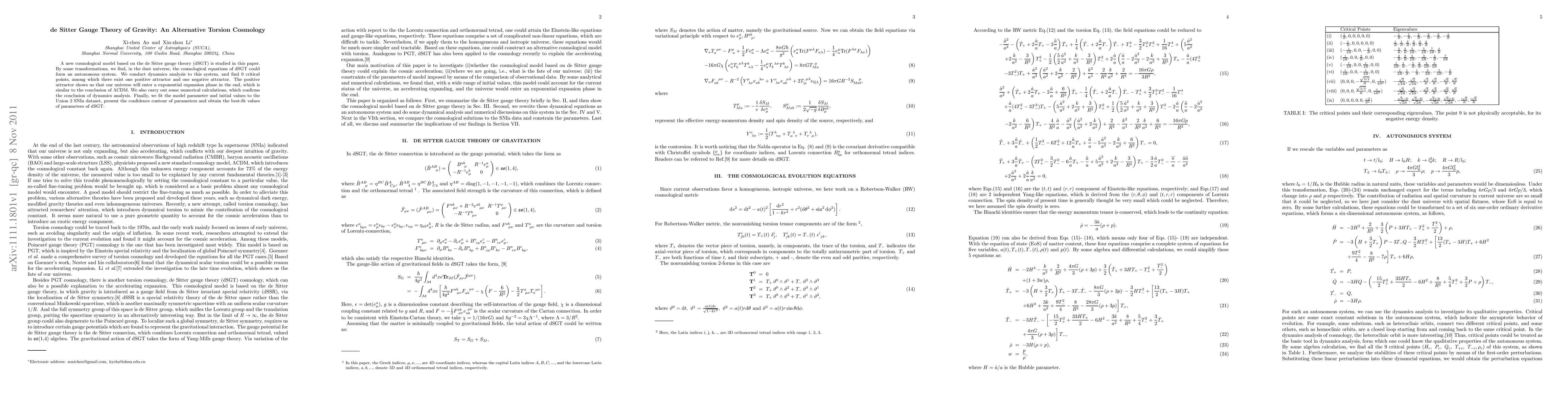 A new cosmological model based on the de Sitter gauge theory (dSGT) is studied in this paper. By some transformations, we find, in the dust universe, the cosmological equations of dSGT could form an autonomous system. We conduct dynamics analysis to this system, and find 9 critical points, among which there exist one positive attractor and one negative attractor. The positive attractor shows us that our universe will enter a exponential expansion phase in the end, which is similar to the conclusion of $\Lambda$CDM. We also carry out some numerical calculations, which confirms the conclusion of dynamics analysis. Finally, we fit the model parameter and initial values to the Union 2 SNIa dataset, present the confidence contour of parameters and obtain the best-fit values of parameters of dSGT.
