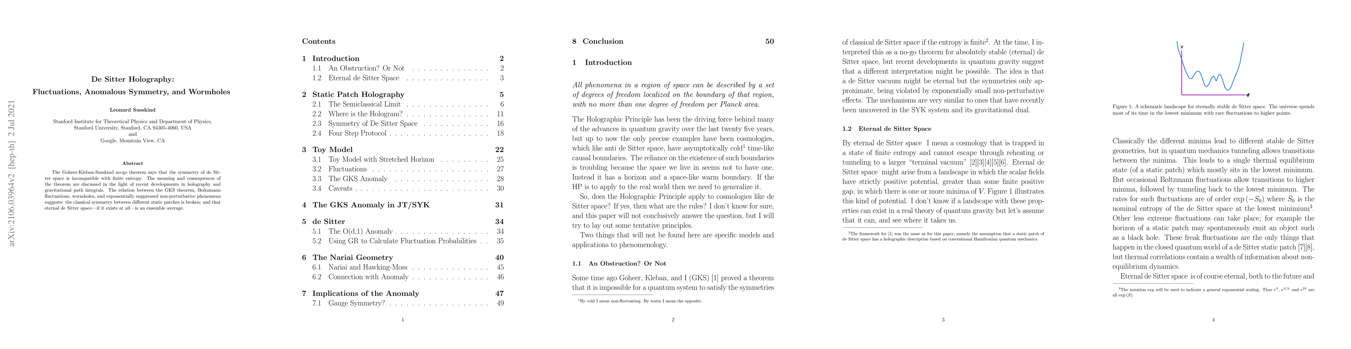 The Goheer-Kleban-Susskind theorem posits that de Sitter space's symmetry conflicts with finite entropy, but recent holography insights suggest this symmetry may be anomalously broken. The implications include the potential existence of wormholes and an ensemble nature of eternal de Sitter space.