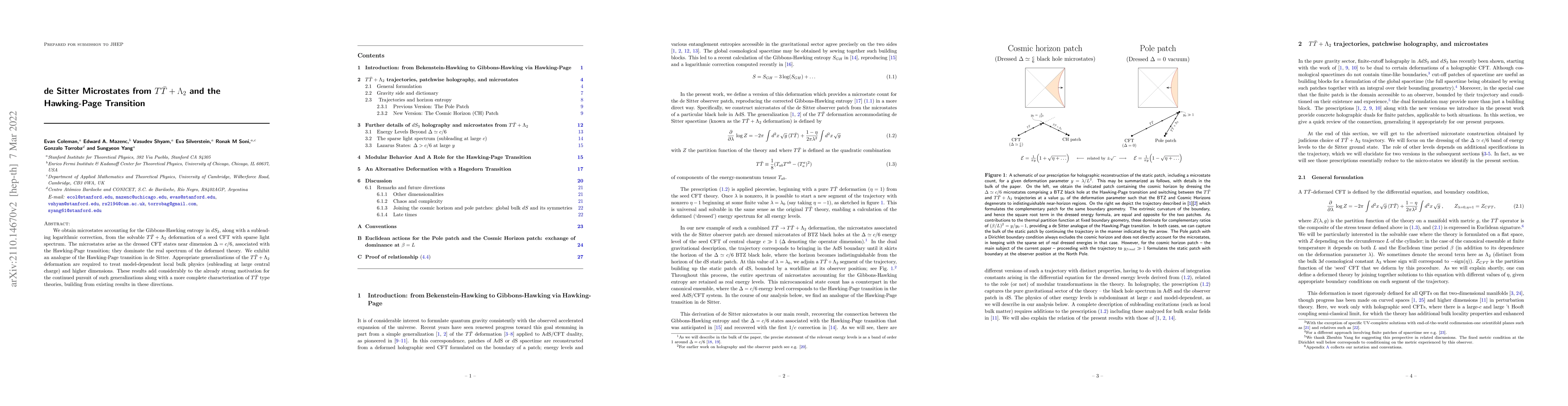 We obtain microstates accounting for the Gibbons-Hawking entropy in $dS_3$, along with a subleading logarithmic correction, from the solvable $T\bar T+\Lambda_2$ deformation of a seed CFT with sparse light spectrum. The microstates arise as the dressed CFT states near dimension $\Delta=c/6$, associated with the Hawking-Page transition; they dominate the real spectrum of the deformed theory. We exhibit an analogue of the Hawking-Page transition in de Sitter. Appropriate generalizations of the $T\bar T+\Lambda_2$ deformation are required to treat model-dependent local bulk physics (subleading at large central charge) and higher dimensions. These results add considerably to the already strong motivation for the continued pursuit of such generalizations along with a more complete characterization of $T\bar T$ type theories, building from existing results in these directions.
