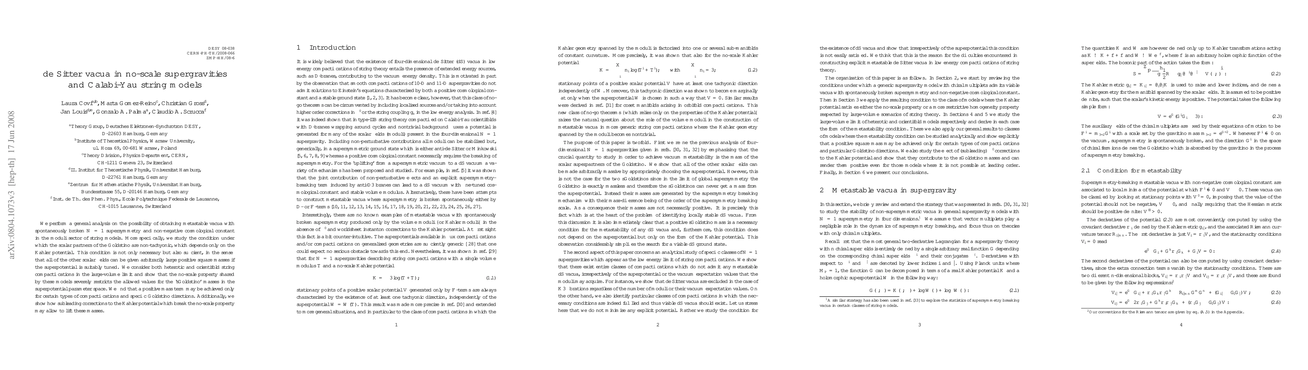 This research paper explores the possibility of metastable vacua with broken supersymmetry in string models, finding that no-scale supergravities severely restrict values for Goldstino masses. It also shows how subleading corrections can lift these masses in certain compactifications.