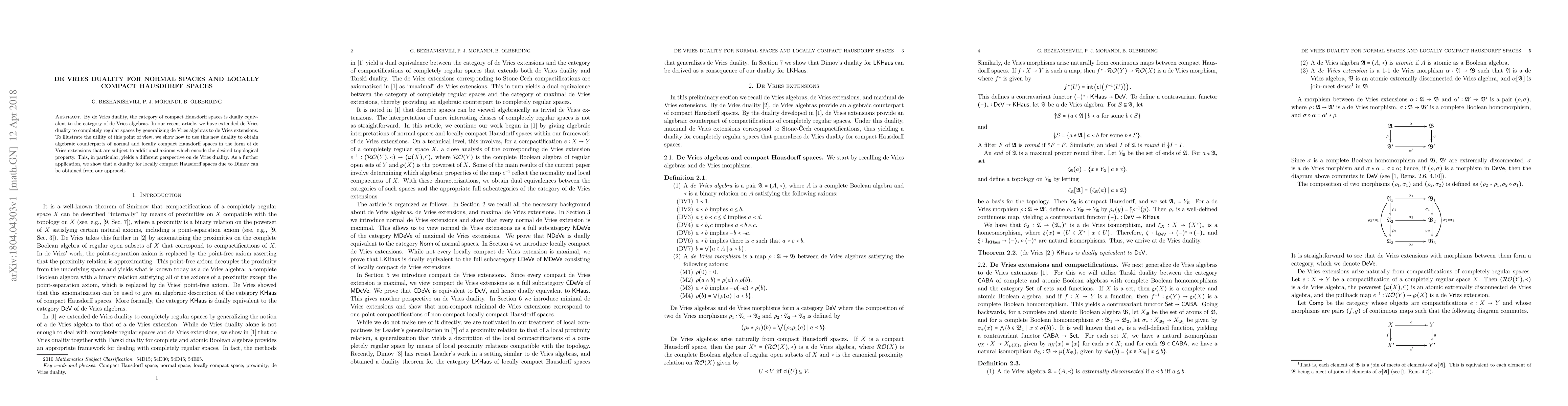 By de Vries duality, the category of compact Hausdorff spaces is dually equivalent to the category of de Vries algebras. In our recent article, we have extended de Vries duality to completely regular spaces by generalizing de Vries algebras to de Vries extensions. To illustrate the utility of this point of view, we show how to use this new duality to obtain algebraic counterparts of normal and locally compact Hausdorff spaces in the form of de Vries extensions that are subject to additional axioms which encode the desired topological property. This, in particular, yields a different perspective on de Vries duality. As a further application, we show that a duality for locally compact Hausdorff spaces due to Dimov can be obtained from our approach.