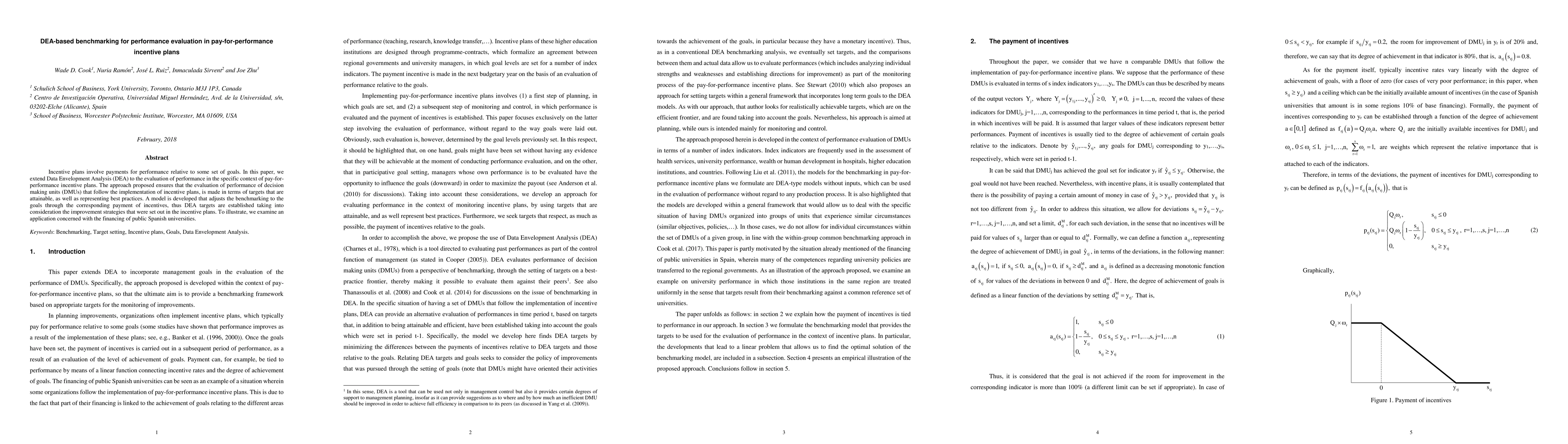 This paper extends Data Envelopment Analysis (DEA) to evaluate performance in pay-for-performance incentive plans, ensuring that benchmarks reflect attainable targets and best practices. An application to public Spanish university financing demonstrates the model's effectiveness in aligning DEA targets with incentive plan strategies.