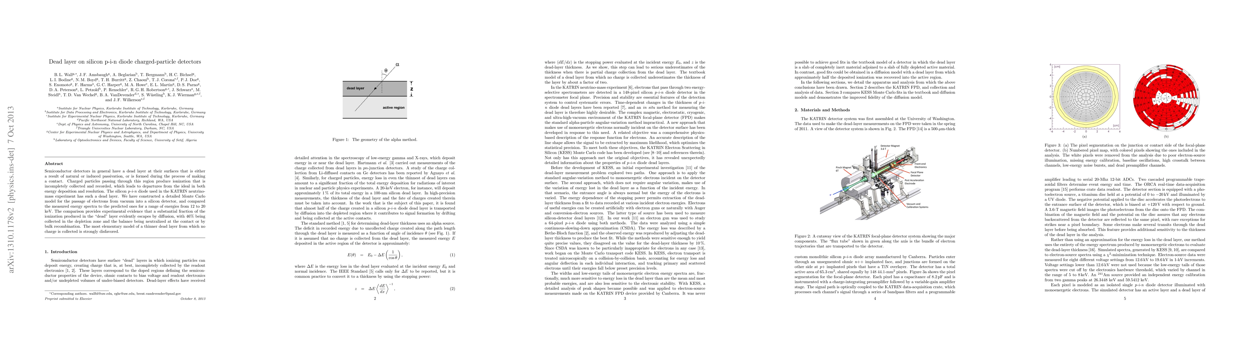 This paper investigates the dead layer in silicon p-i-n diodes used in the KATRIN experiment, revealing that 46% of ionization in the dead layer is collected, contrary to the expectation of a non-collecting layer. The study uses a Monte Carlo model to compare predicted and measured energy spectra, providing evidence of charge diffusion and recombination.