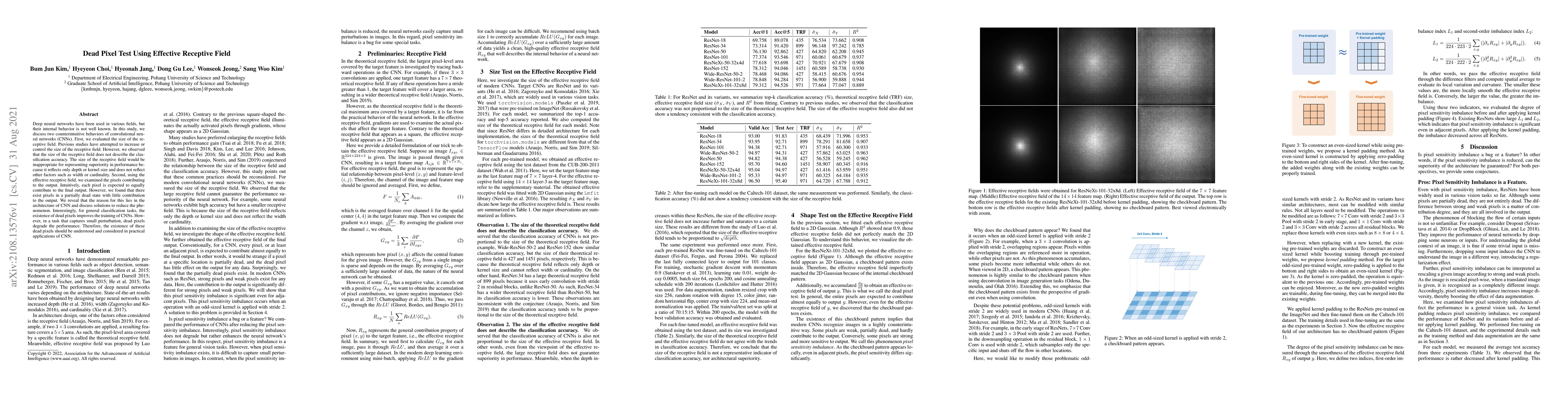 Deep neural networks have been used in various fields, but their internal behavior is not well known. In this study, we discuss two counterintuitive behaviors of convolutional neural networks (CNNs). First, we evaluated the size of the receptive field. Previous studies have attempted to increase or control the size of the receptive field. However, we observed that the size of the receptive field does not describe the classification accuracy. The size of the receptive field would be inappropriate for representing superiority in performance because it reflects only depth or kernel size and does not reflect other factors such as width or cardinality. Second, using the effective receptive field, we examined the pixels contributing to the output. Intuitively, each pixel is expected to equally contribute to the final output. However, we found that there exist pixels in a partially dead state with little contribution to the output. We reveal that the reason for this lies in the architecture of CNN and discuss solutions to reduce the phenomenon. Interestingly, for general classification tasks, the existence of dead pixels improves the training of CNNs. However, in a task that captures small perturbation, dead pixels degrade the performance. Therefore, the existence of these dead pixels should be understood and considered in practical applications of CNN.