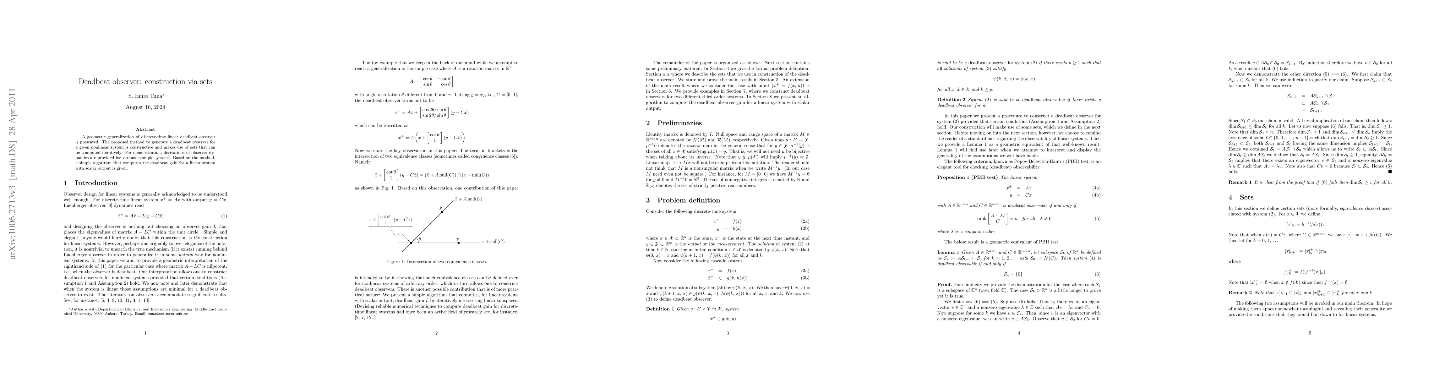 A geometric generalization of discrete-time linear deadbeat observer is presented. The proposed method to generate a deadbeat observer for a given nonlinear system is constructive and makes use of sets that can be computed iteratively. For demonstration, derivations of observer dynamics are provided for various example systems. Based on the method, a simple algorithm that computes the deadbeat gain for a linear system with scalar output is given.
