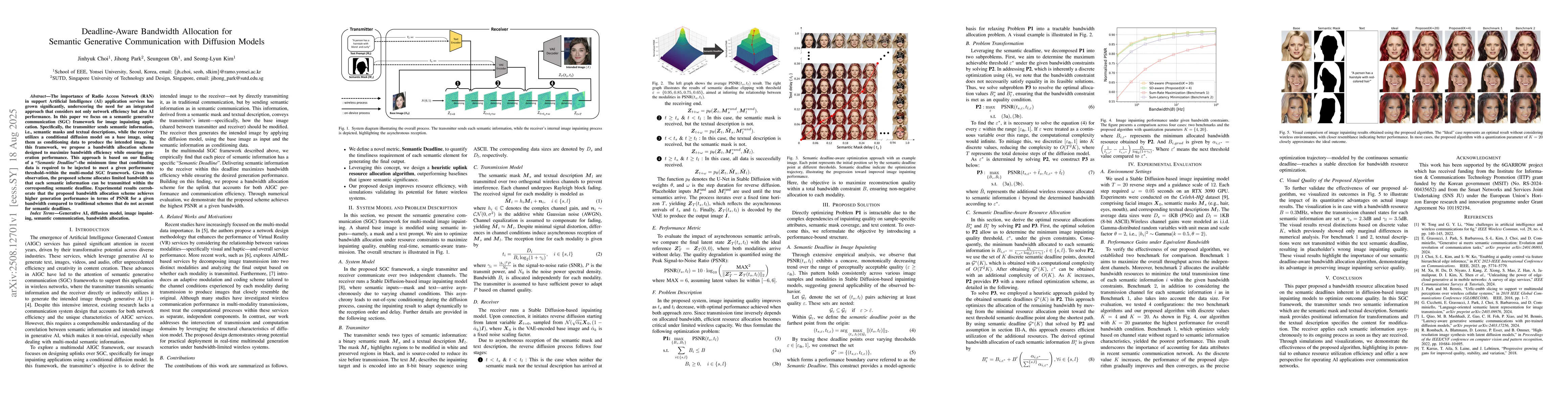 The work stands out by integrating the concept of 'Semantic Deadline' into bandwidth allocation for diffusion-based image inpainting, ensuring timely delivery of semantic information for optimal generation performance.