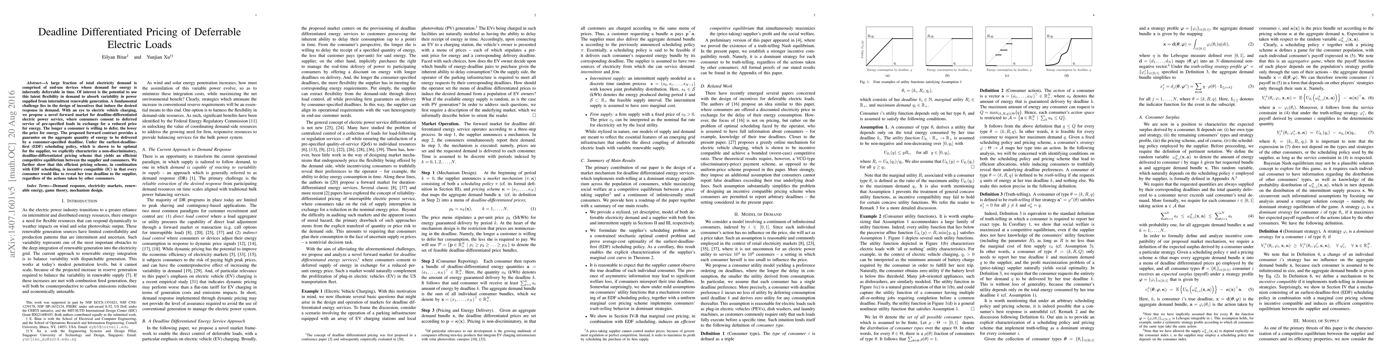 This paper proposes a forward market for differentiated electric power services to incentivize deferrable electric loads, such as electric vehicle charging, to absorb variability from renewable energy sources. It introduces a deadline-differentiated pricing scheme that offers lower prices for longer deferral periods, ensuring an efficient equilibrium and incentive compatibility.