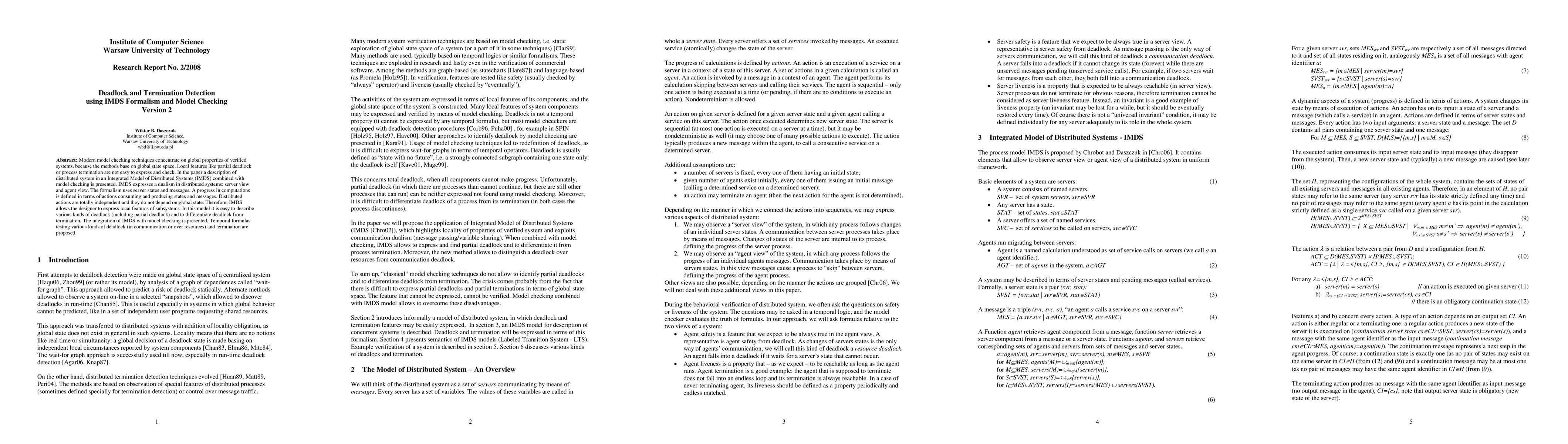 This paper introduces an Integrated Model of Distributed Systems (IMDS) combined with model checking to detect deadlock and termination in distributed systems. IMDS allows expressing local features like partial deadlock and termination, using server states and messages, thus facilitating the detection of these conditions independently of global state.