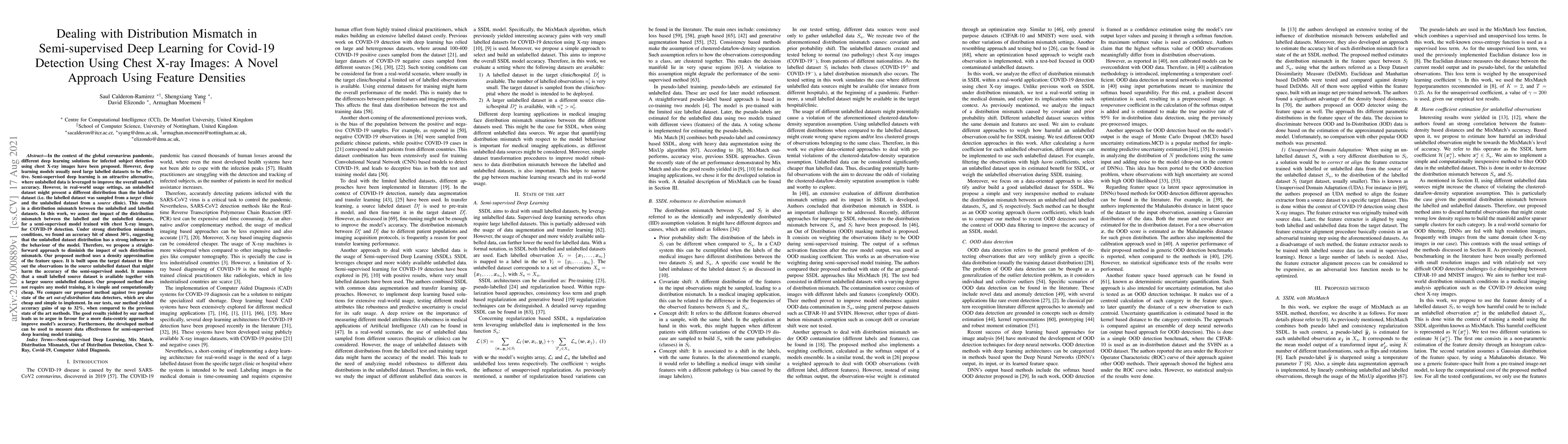 This paper addresses the issue of distribution mismatch in semi-supervised deep learning for COVID-19 detection using chest X-ray images, proposing a method based on feature density approximation to mitigate the impact. The method achieved up to 32% accuracy gains compared to existing out-of-distribution detectors.