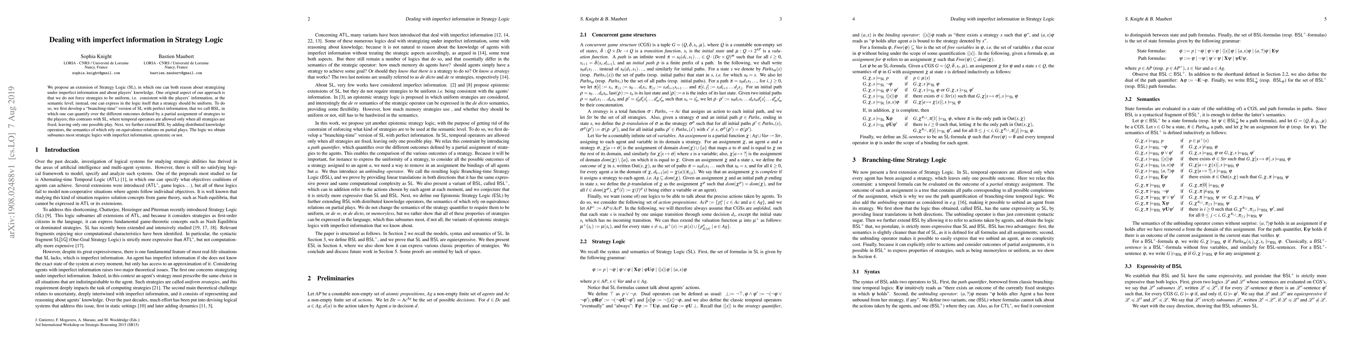 Researchers propose an extension of Strategy Logic to handle imperfect information in strategic decision-making, enabling uniform strategies based on players' knowledge without forcing consistency at the semantic level. The new logic, called Branching-Time Strategy Logic (BSL), subsumes most strategic logics with imperfect information and epistemic reasoning.