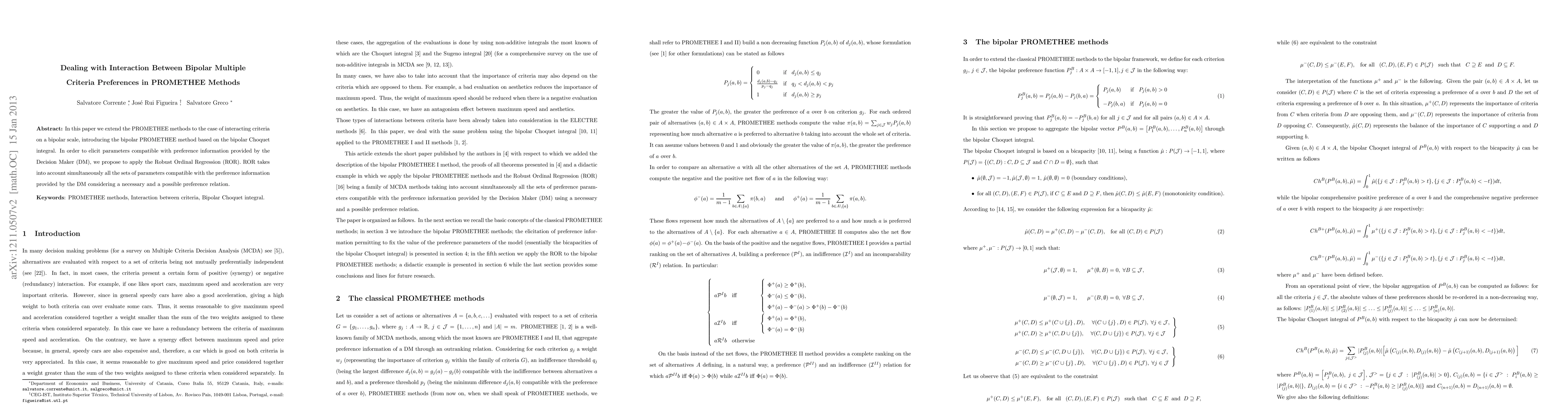 In this paper, we consider the bipolar approach to Multiple Criteria Decision Analysis (MCDA). In particular we aggregate positive and negative preferences by means of the bipolar PROMETHEE method. To elicit preferences we consider Robust Ordinal Regression (ROR) that has been recently proposed to derive robust conclusions through the use of the concepts of possible and necessary preferences. It permits to take into account the whole set of preference parameters compatible with the preference information provided by the Decision Maker (DM).