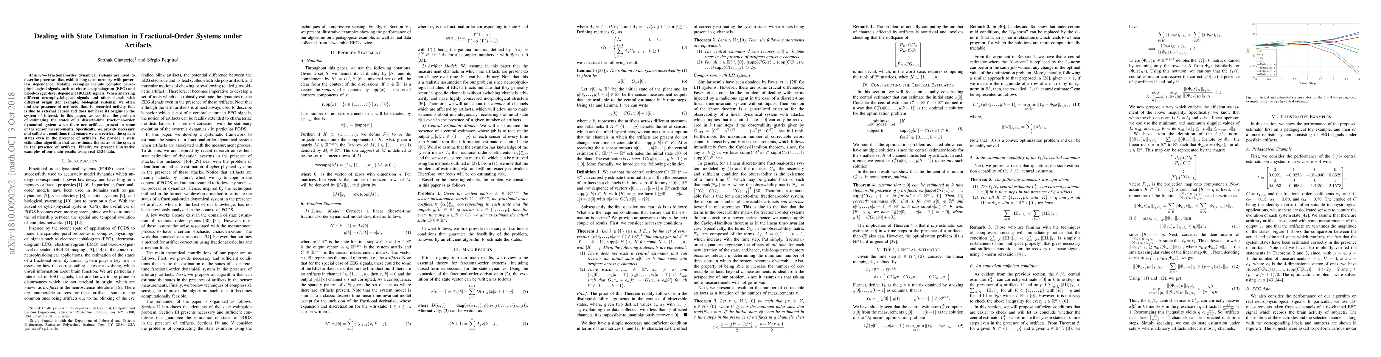 A state estimation algorithm was proposed to handle fractional-order systems with artifacts