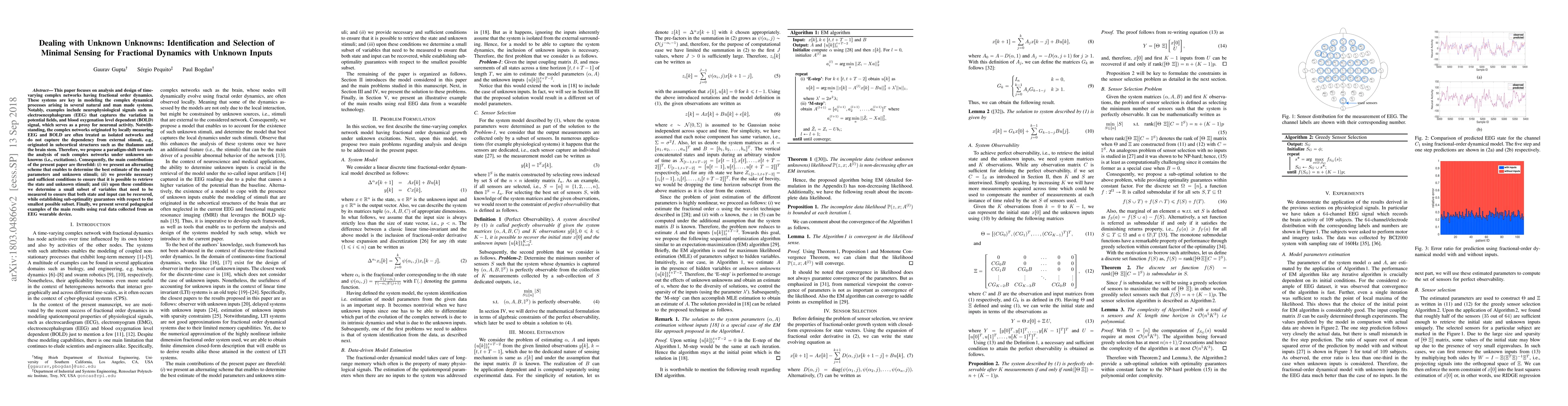 This paper focuses on analysis and design of time-varying complex networks having fractional order dynamics. These systems are key in modeling the complex dynamical processes arising in several natural and man made systems. Notably, examples include neurophysiological signals such as electroencephalogram (EEG) that captures the variation in potential fields, and blood oxygenation level dependent (BOLD) signal, which serves as a proxy for neuronal activity. Notwithstanding, the complex networks originated by locally measuring EEG and BOLD are often treated as isolated networks and do not capture the dependency from external stimuli, e.g., originated in subcortical structures such as the thalamus and the brain stem. Therefore, we propose a paradigm-shift towards the analysis of such complex networks under unknown unknowns (i.e., excitations). Consequently, the main contributions of the present paper are threefold: (i) we present an alternating scheme that enables to determine the best estimate of the model parameters and unknown stimuli; (ii) we provide necessary and sufficient conditions to ensure that it is possible to retrieve the state and unknown stimuli; and (iii) upon these conditions we determine a small subset of variables that need to be measured to ensure that both state and input can be recovered, while establishing sub-optimality guarantees with respect to the smallest possible subset. Finally, we present several pedagogical examples of the main results using real data collected from an EEG wearable device.