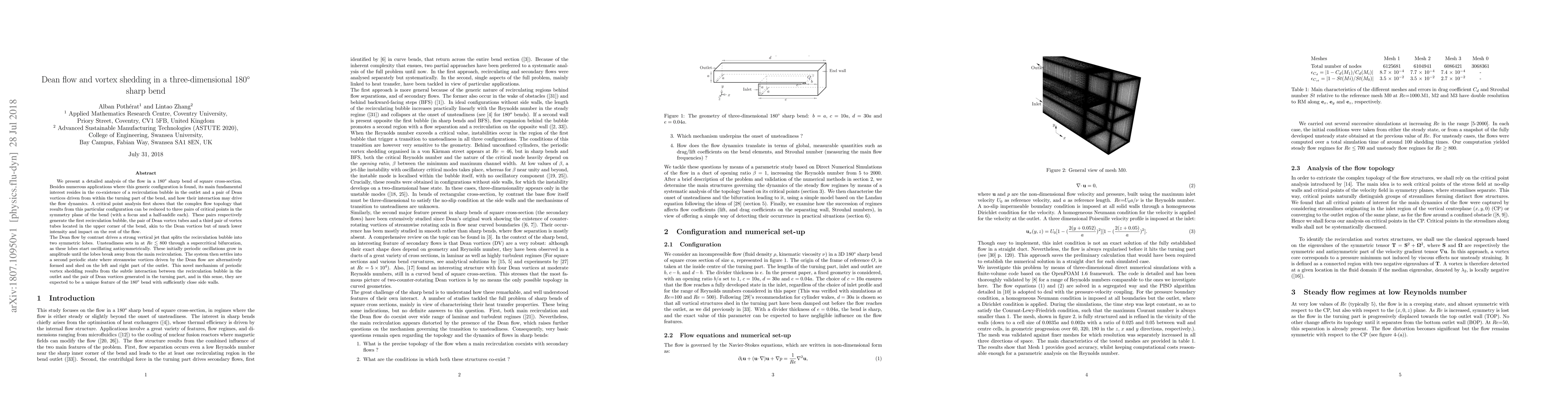 This paper analyzes the complex flow dynamics in a 180° sharp bend with a square cross-section, focusing on the interaction between recirculation bubbles and Dean vortices. The study reveals a novel mechanism of periodic vortex shedding driven by the interplay between these flow features.
