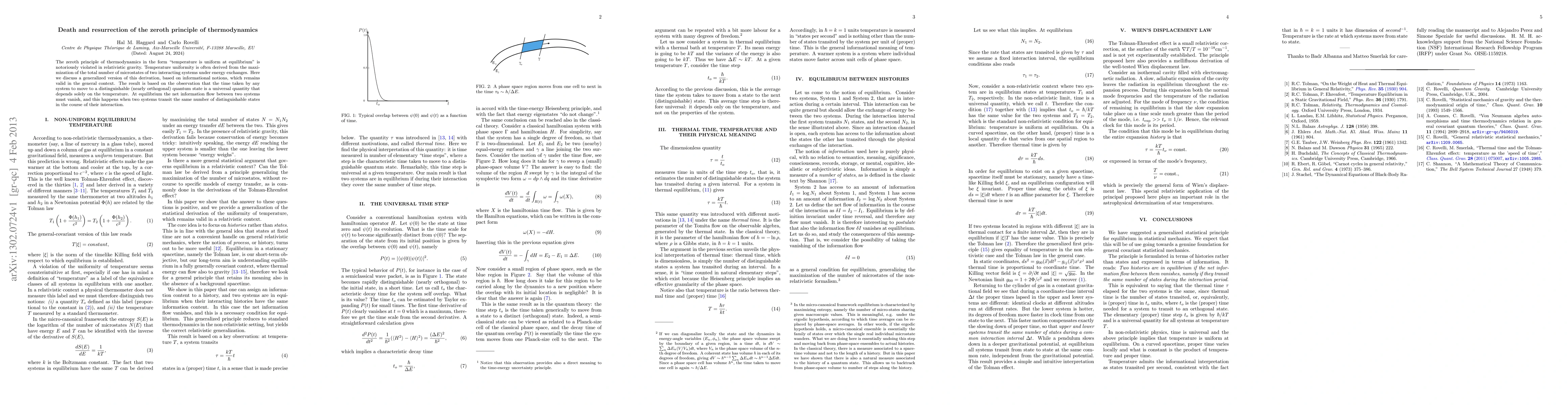 The zeroth principle of thermodynamics in the form "temperature is uniform at equilibrium" is notoriously violated in relativistic gravity. Temperature uniformity is often derived from the maximization of the total number of microstates of two interacting systems under energy exchanges. Here we discuss a generalized version of this derivation, based on informational notions, which remains valid in the general context. The result is based on the observation that the time taken by any system to move to a distinguishable (nearly orthogonal) quantum state is a universal quantity that depends solely on the temperature. At equilibrium the net information flow between two systems must vanish, and this happens when two systems transit the same number of distinguishable states in the course of their interaction.
