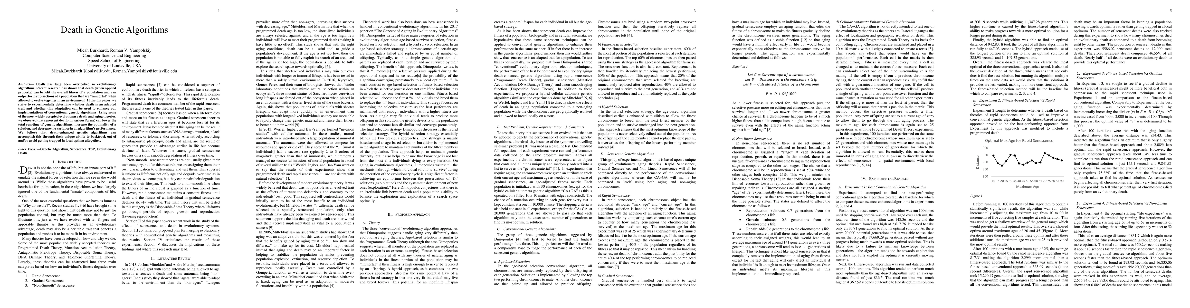 Death has long been overlooked in evolutionary algorithms. Recent research has shown that death (when applied properly) can benefit the overall fitness of a population and can outperform sub-sections of a population that are "immortal" when allowed to evolve together in an environment [1]. In this paper, we strive to experimentally determine whether death is an adapted trait and whether this adaptation can be used to enhance our implementations of conventional genetic algorithms. Using some of the most widely accepted evolutionary death and aging theories, we observed that senescent death (in various forms) can lower the total run-time of genetic algorithms, increase the optimality of a solution, and decrease the variance in an algorithm's performance. We believe that death-enhanced genetic algorithms can accomplish this through their unique ability to backtrack out of and/or avoid getting trapped in local optima altogether.