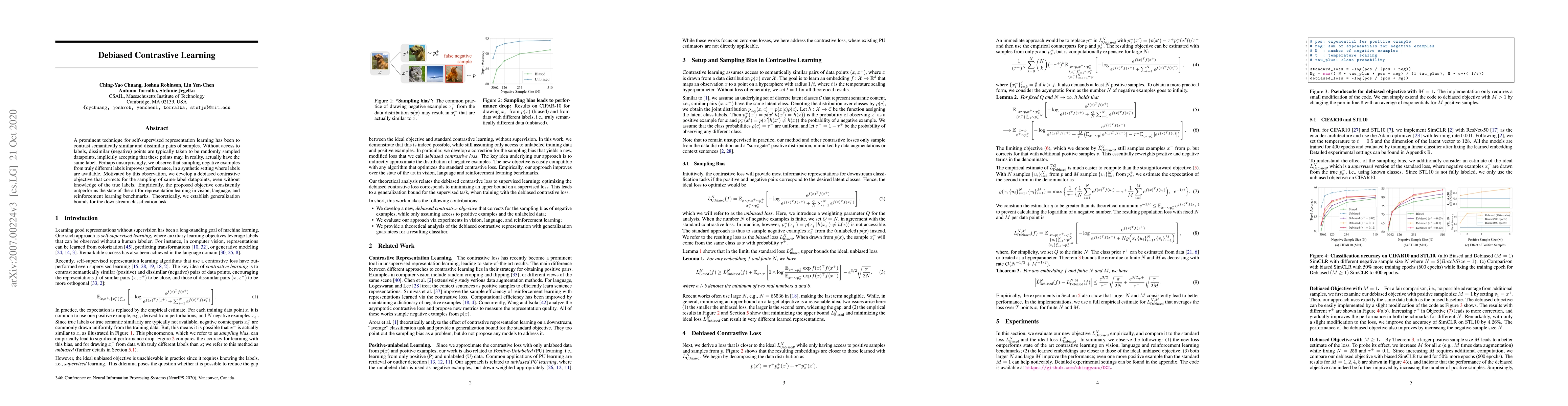 Researchers developed a debiased contrastive learning method to improve self-supervised representation learning in vision, language, and reinforcement learning, achieving better performance than state-of-the-art methods.