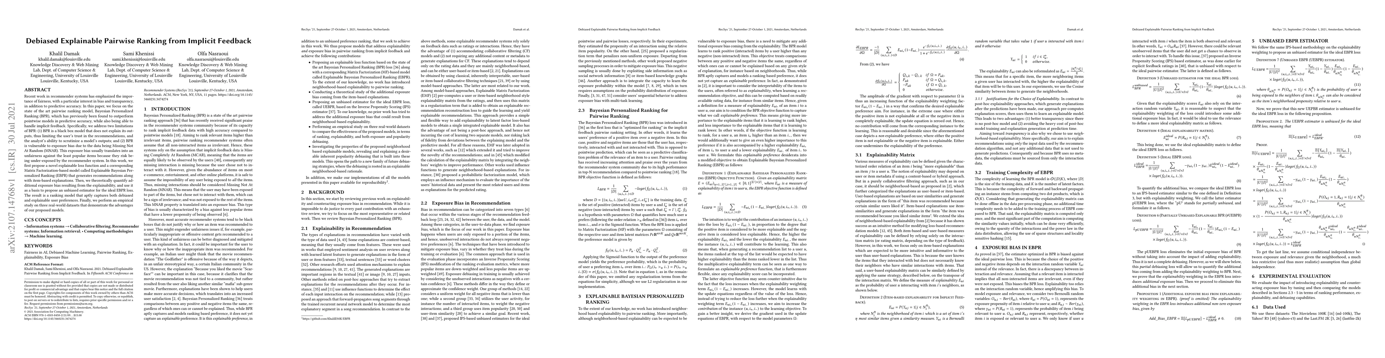 This paper proposes an Explainable Bayesian Personalized Ranking (EBPR) model that enhances the traditional BPR model by providing item-based explanations and addressing exposure bias, thereby improving fairness and transparency in recommender systems. The study demonstrates the effectiveness of the new model through empirical evaluations on three datasets.