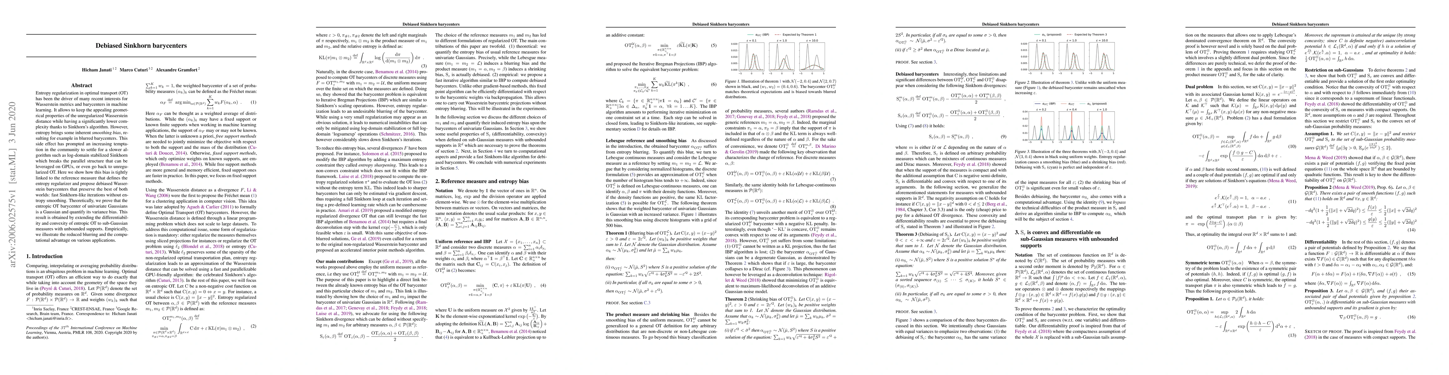 Entropy regularization in optimal transport (OT) has been the driver of many recent interests for Wasserstein metrics and barycenters in machine learning. It allows to keep the appealing geometrical properties of the unregularized Wasserstein distance while having a significantly lower complexity thanks to Sinkhorn's algorithm. However, entropy brings some inherent smoothing bias, resulting for example in blurred barycenters. This side effect has prompted an increasing temptation in the community to settle for a slower algorithm such as log-domain stabilized Sinkhorn which breaks the parallel structure that can be leveraged on GPUs, or even go back to unregularized OT. Here we show how this bias is tightly linked to the reference measure that defines the entropy regularizer and propose debiased Wasserstein barycenters that preserve the best of both worlds: fast Sinkhorn-like iterations without entropy smoothing. Theoretically, we prove that the entropic OT barycenter of univariate Gaussians is a Gaussian and quantify its variance bias. This result is obtained by extending the differentiability and convexity of entropic OT to sub-Gaussian measures with unbounded supports. Empirically, we illustrate the reduced blurring and the computational advantage on various applications.