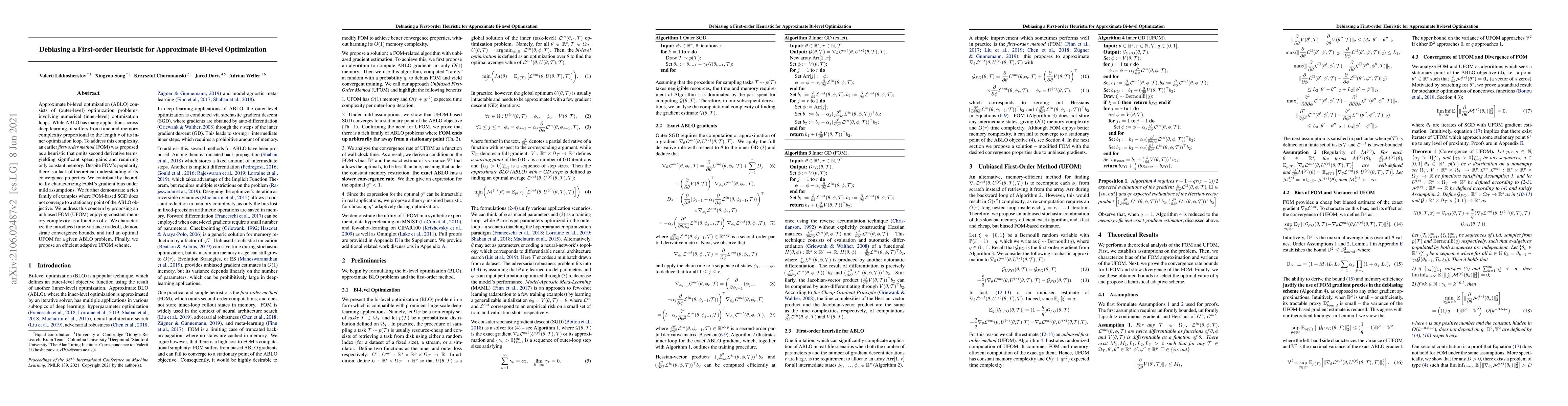 Researchers developed an unbiased first-order method to approximate bi-level optimization, addressing time complexity concerns, and proposed a new scheme with efficient adaptive learning.